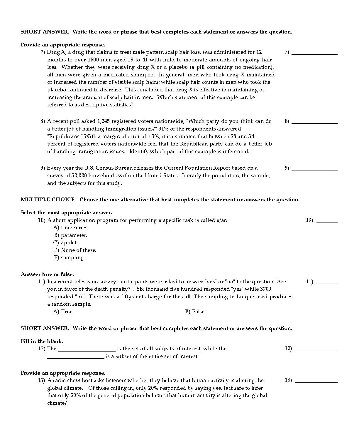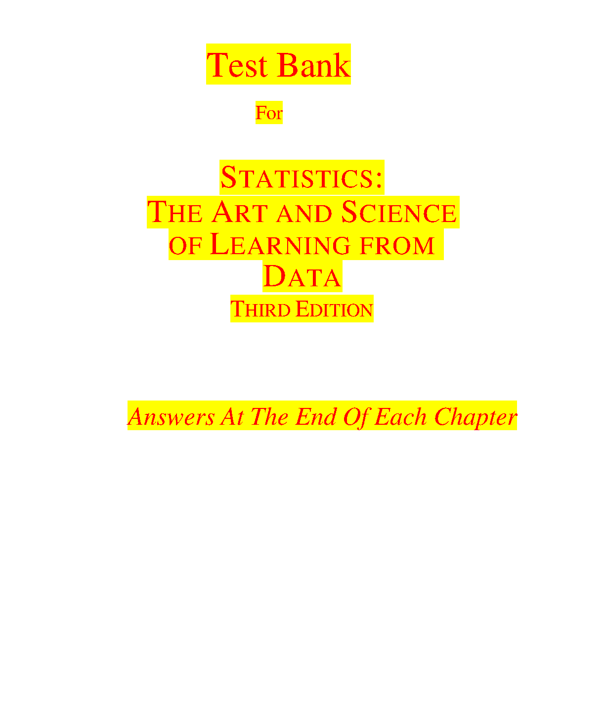 Test Bank for Statistics: The Art and Science of Learning from Data, 3rd Edition by David Freedman, Robert Pisani, and Roger Purves