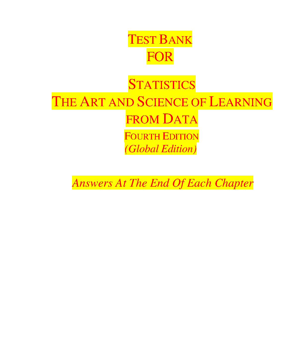 Test Bank for Statistics: The Art and Science of Learning from Data, 4th Edition (Global Edition) by David M. Lane