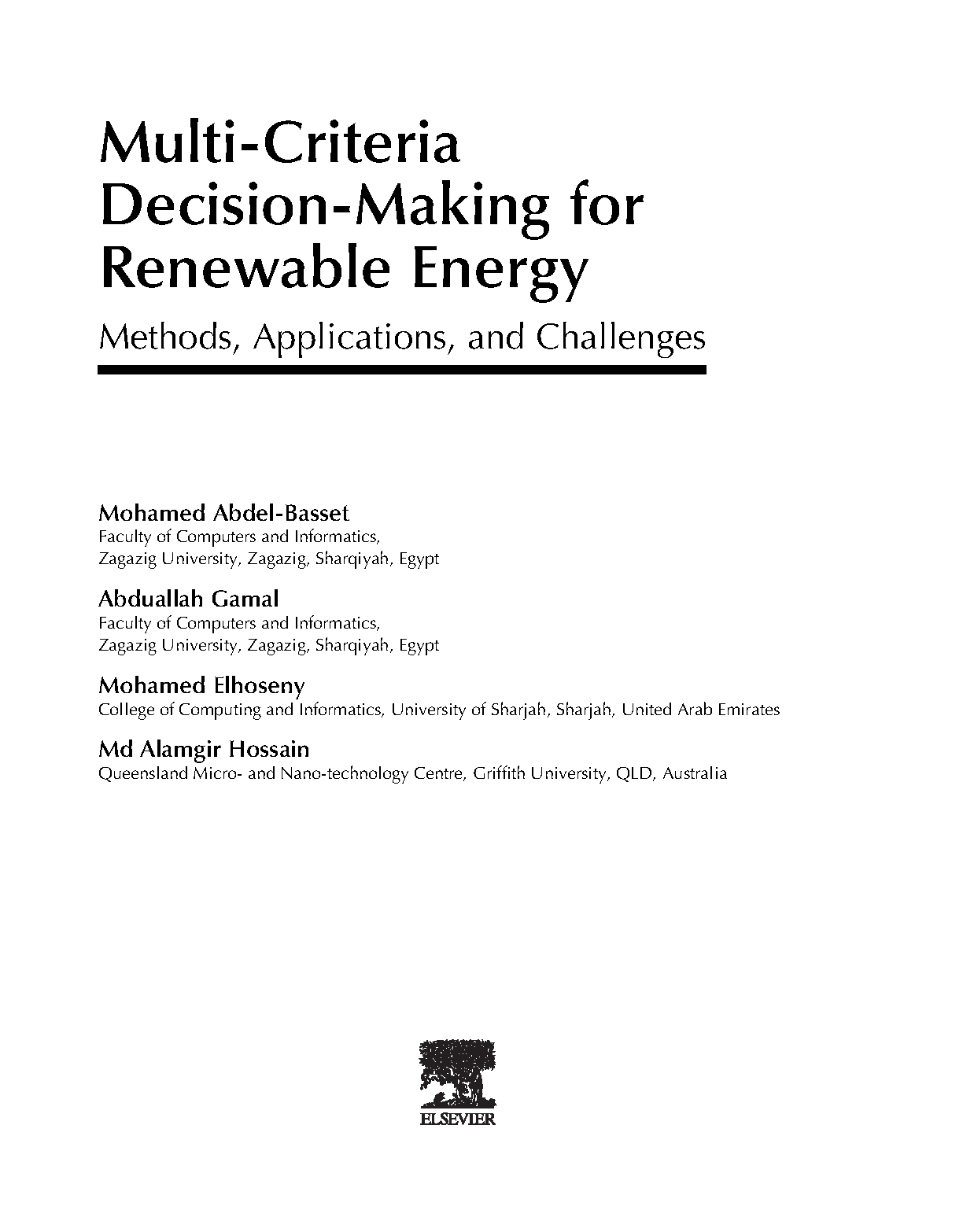Multi-Criteria Decision-Making for Renewable Energy: Methods, Applications, and Challenges by Mohamed Abdel-Basset, Mohamed Elhoseny, Abduallah Gamal, and Md Alamgir Hossain