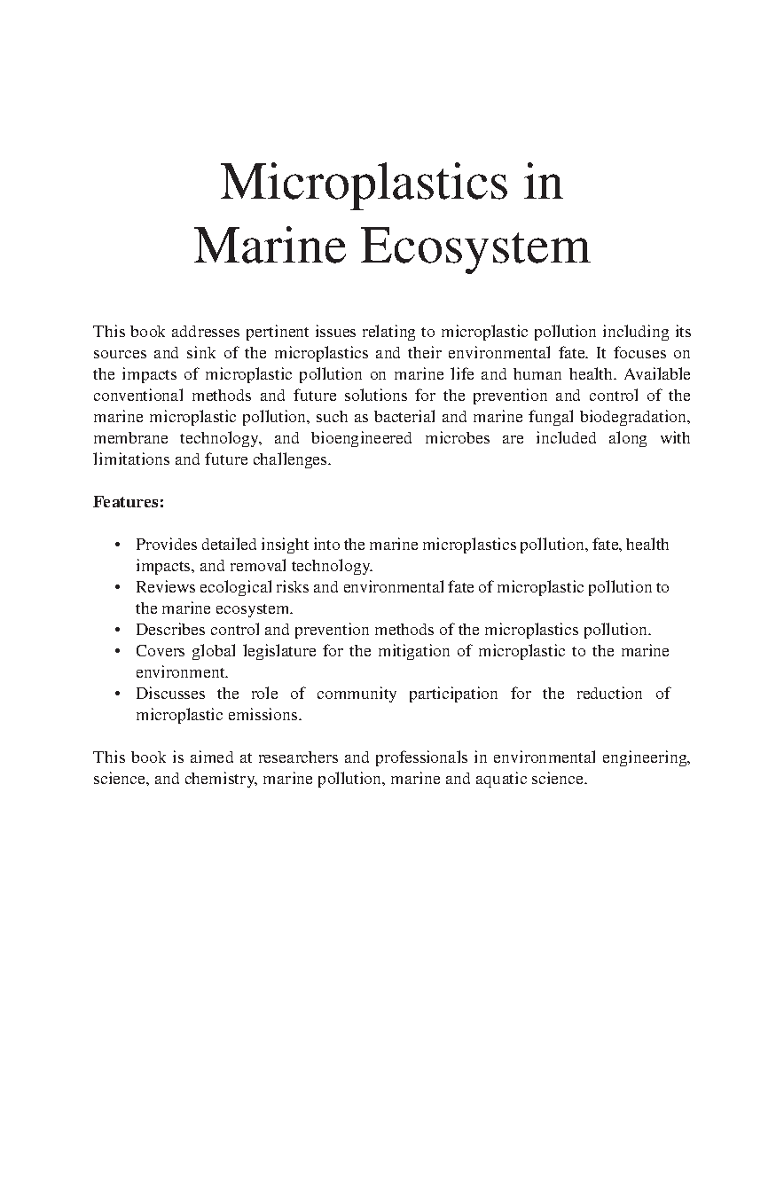Microplastics in Marine Ecosystem: Sources, Risks, Mitigation Technologies, and Challenges - By Shobhika Parmar, Vijay Kumar Sharma, and Vir Singh (1st Edition)