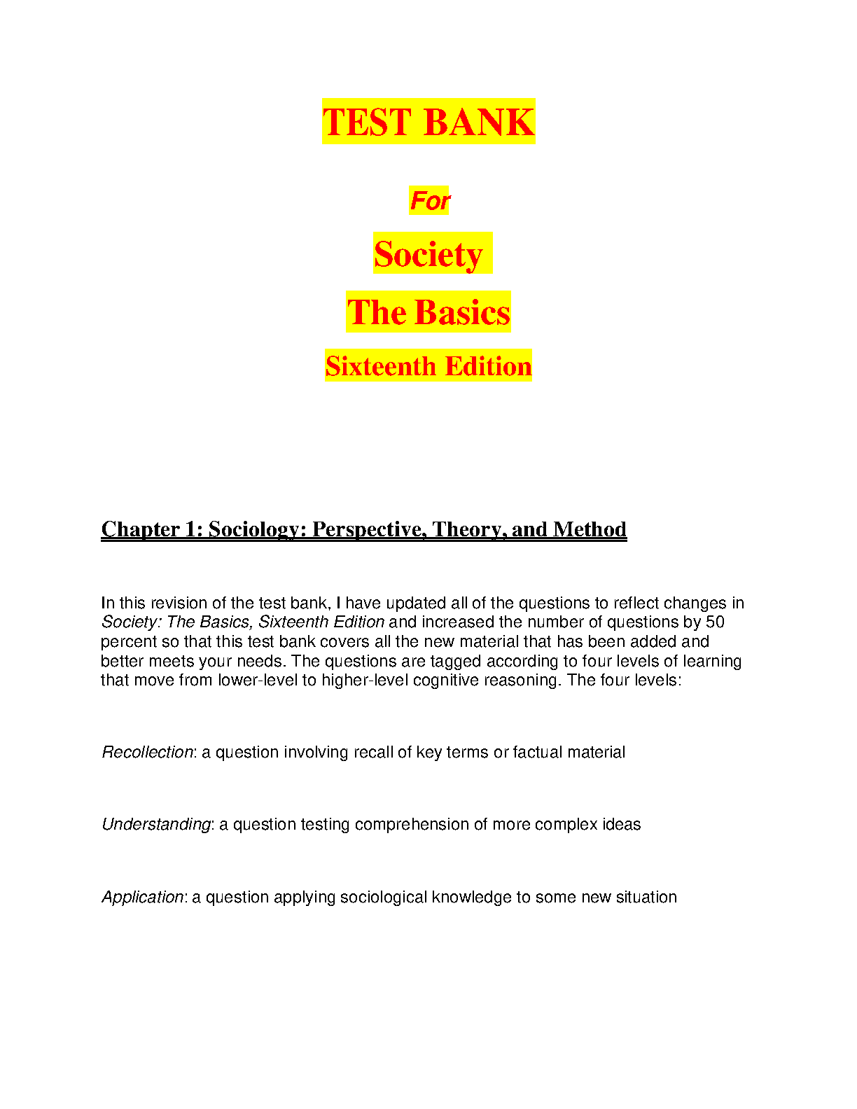 Society: The Basics, 16th Edition Test Bank - Updated for 2024-2025 by John J. Macionis