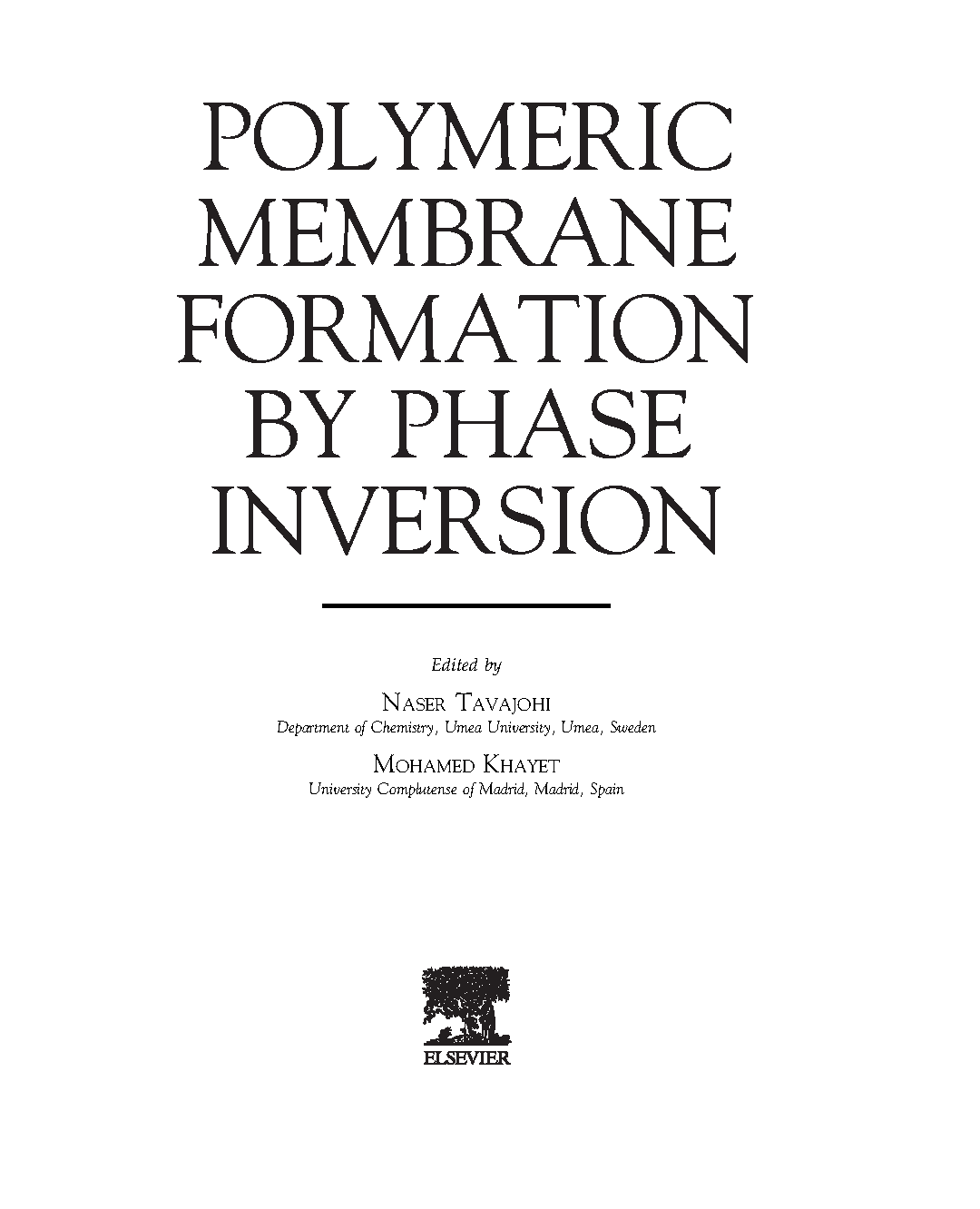 Polymeric Membrane Formation by Phase Inversion: A Comprehensive Guide (1st Edition) - Edited by Naser Tavvajohi and Mohamed Khayet
