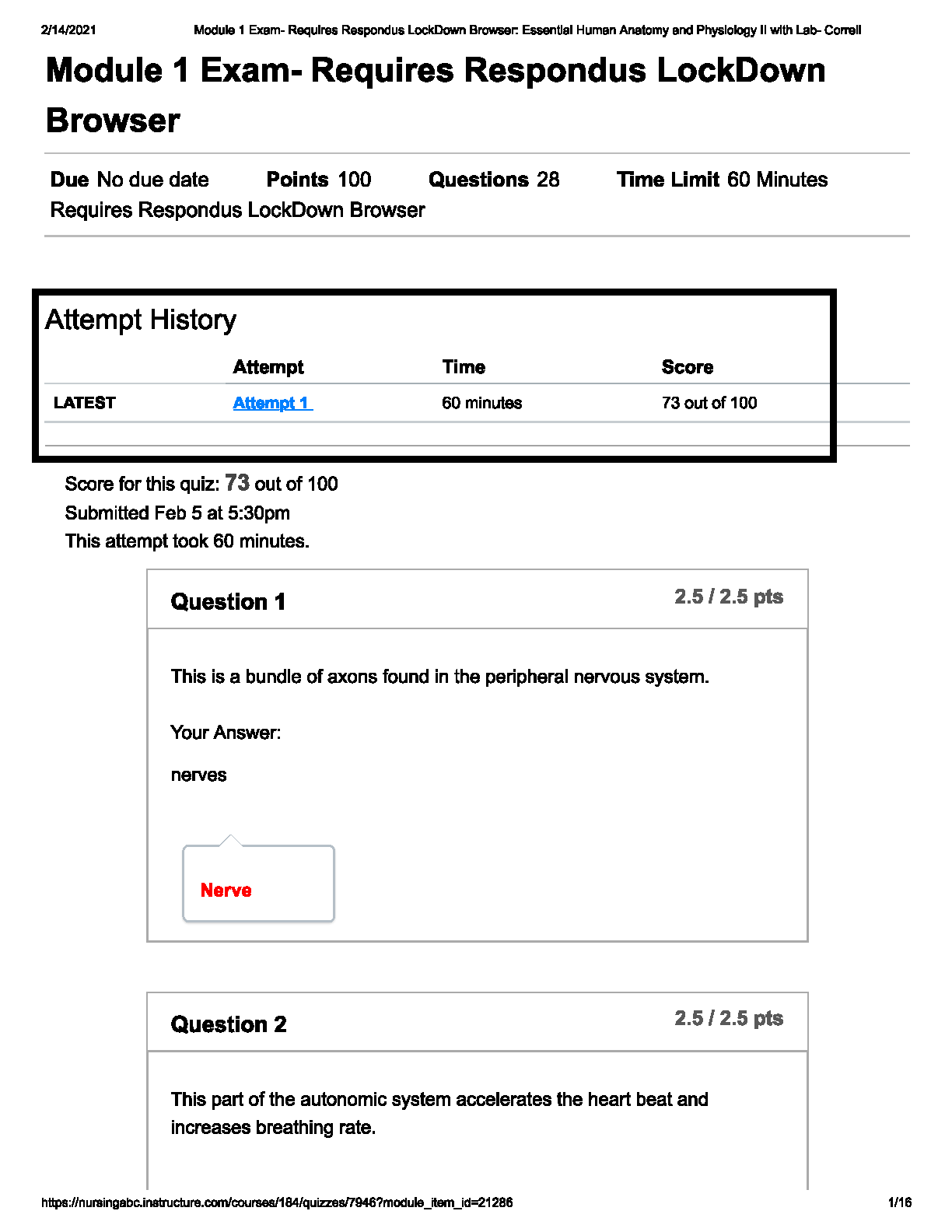 Essential Human Anatomy and Physiology II with Lab - Cornell: Module 1 Exam - 2024/2025 Edition