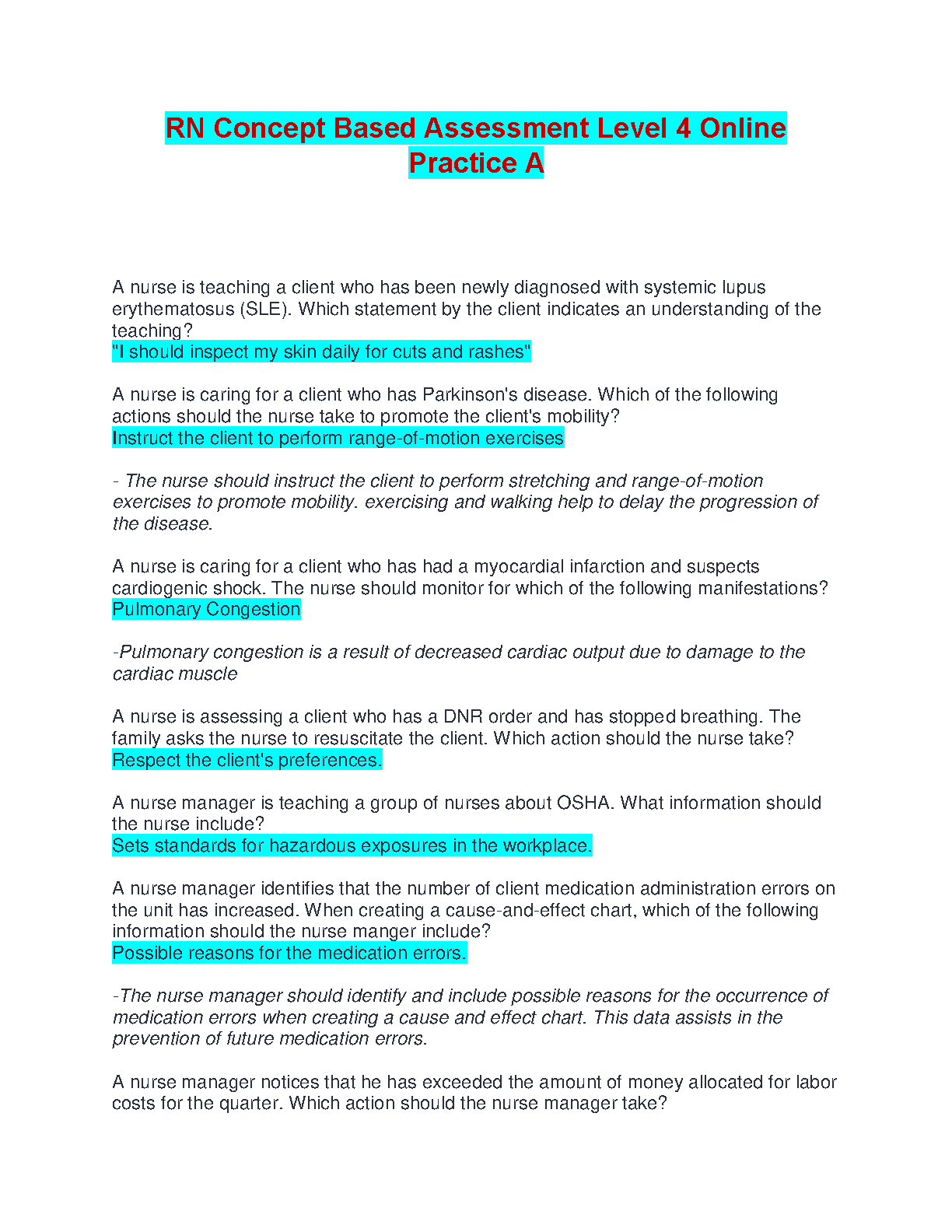 Ace your nursing exams with this comprehensive guide! This resource provides practice questions and answers for Level 4 RN Concept Based Assessments, designed to help you master key concepts and pass on your first attempt. Prepare for success and avoid resits with in-depth explanations and focused practice.