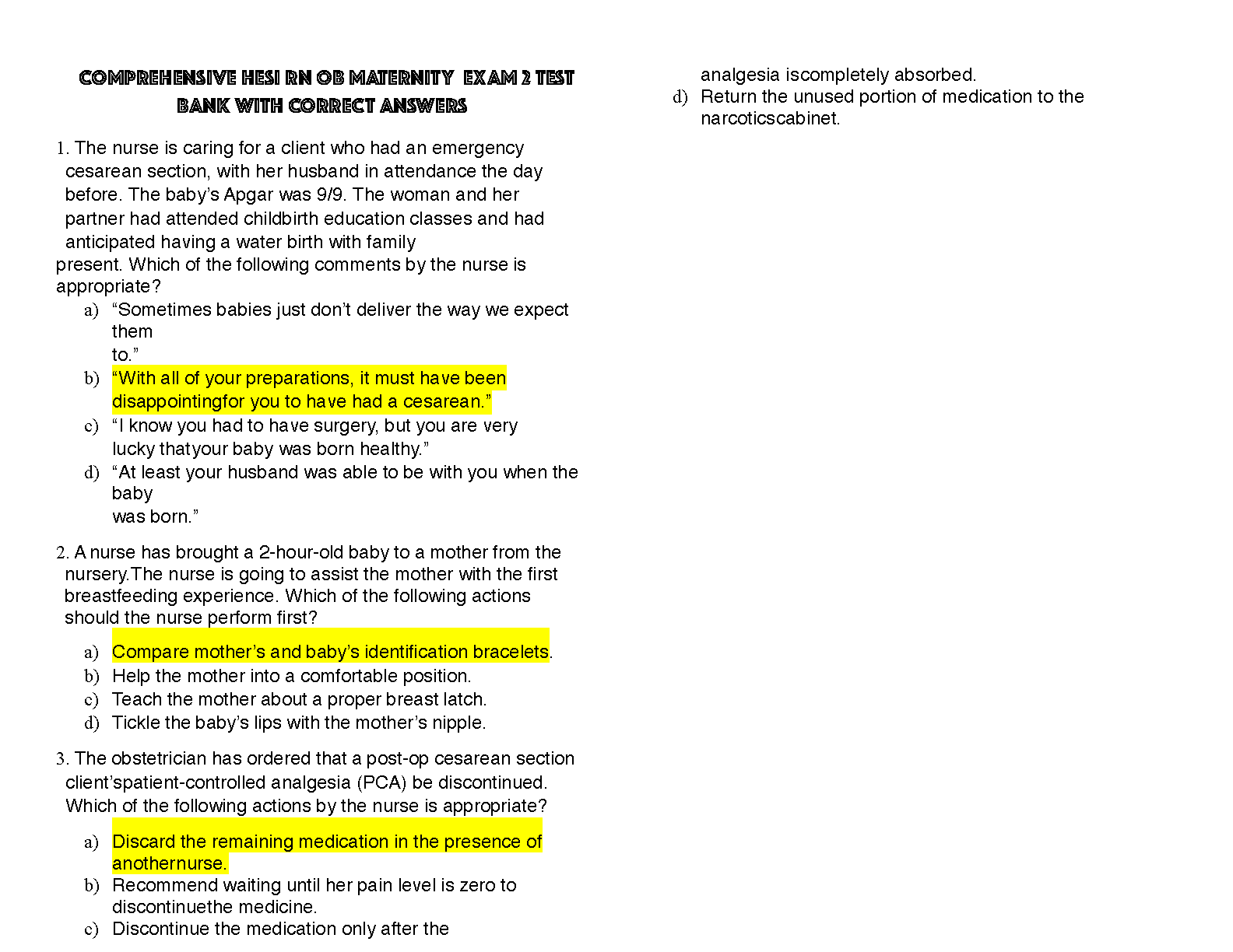 Ace your HESI RN OB Maternity exam on the first attempt with this comprehensive test bank. This 2024-2025 edition provides correct answers and detailed explanations, helping you avoid resits and master the material. Prepare effectively and boost your confidence for exam success!