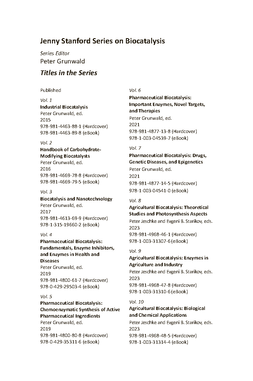 Agricultural Biocatalysis: Biological and Chemical Applications - Volume 10, Edited by Peter Jeschke and Evgeni B. Starikov