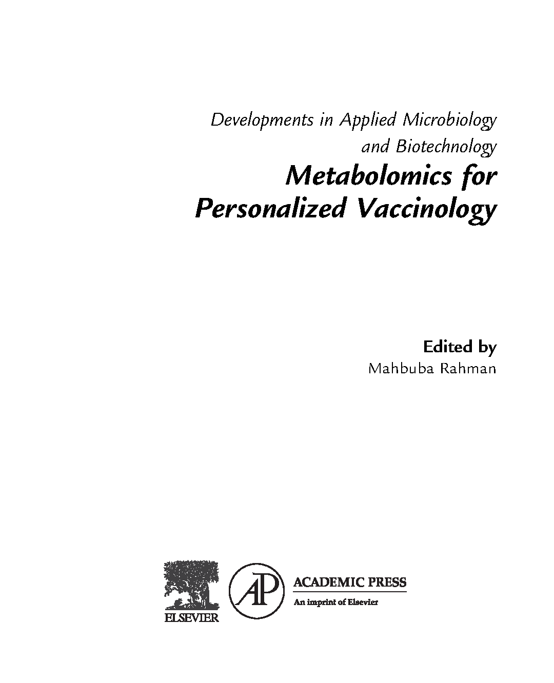 Metabolomics for Personalized Vaccinology: Developments in Applied Microbiology and Biotechnology (1st Edition) - Edited by Mahbuba Rahman