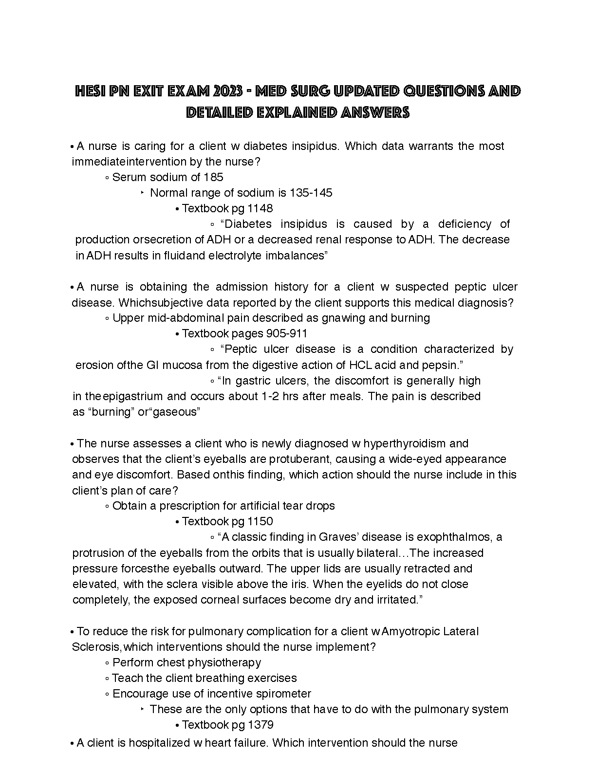 HESI PN Exit Exam 2023: Med-Surg Updated Questions and Detailed Explained Answers