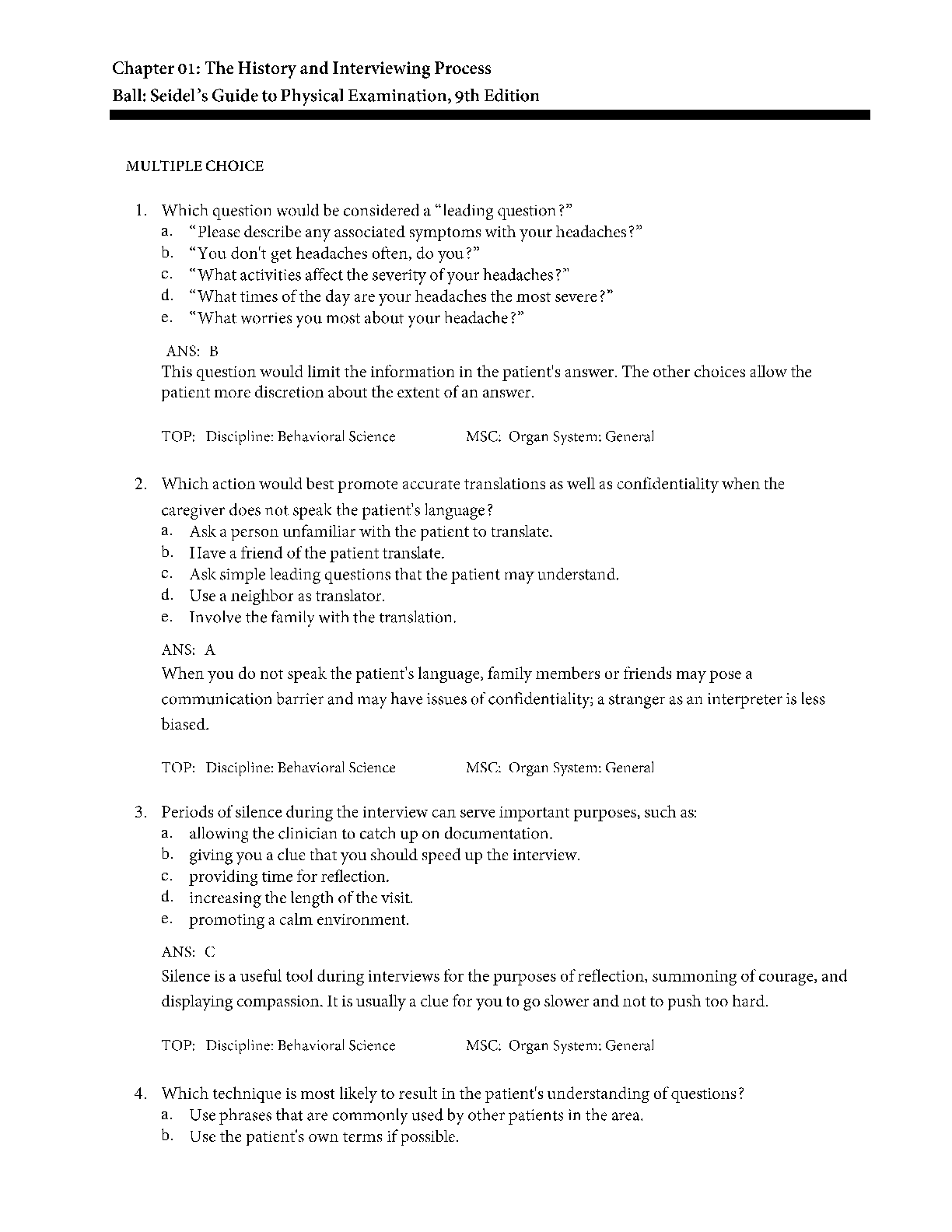 Ace your exams with this comprehensive test bank for Seidel's Guide to Physical Examination, 9th Edition. This resource provides a wealth of practice questions to help students master the material and avoid resits. Prepare effectively for your exams with this valuable study tool.
