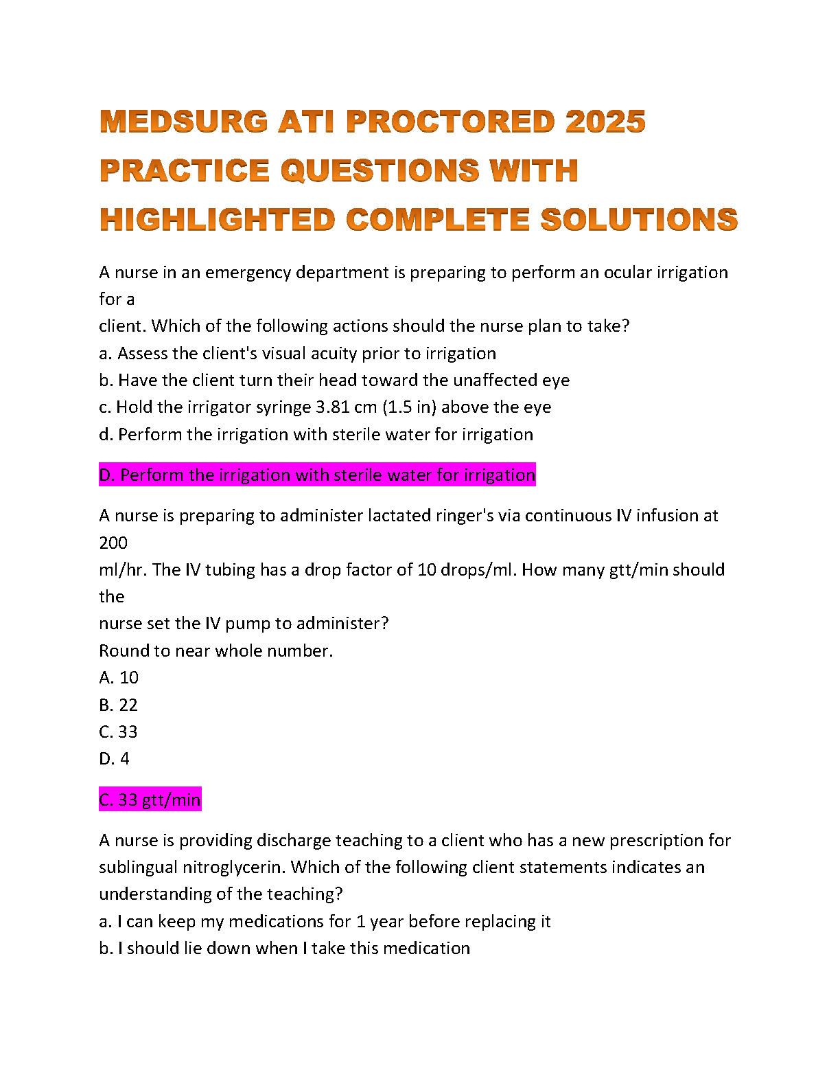 Ace your MedSurg ATI exam with this comprehensive 2025 practice question bank. Includes detailed solutions to help you master key concepts and avoid resits. Prepare effectively for your nursing exams and achieve your academic goals.