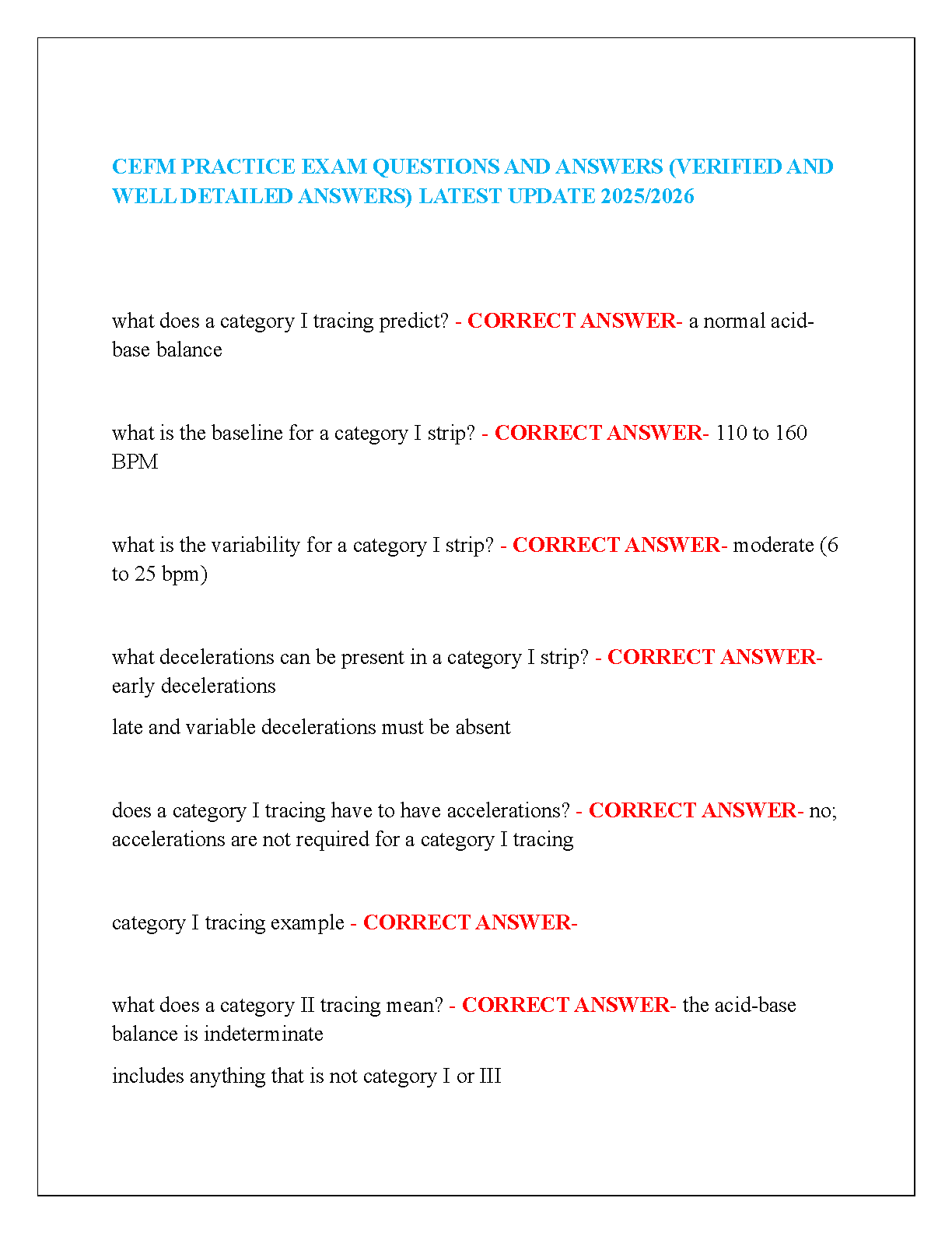 CEFM Practice Exam Questions and Answers (Verified and Well-Detailed Answers) - 2024/2025 Edition