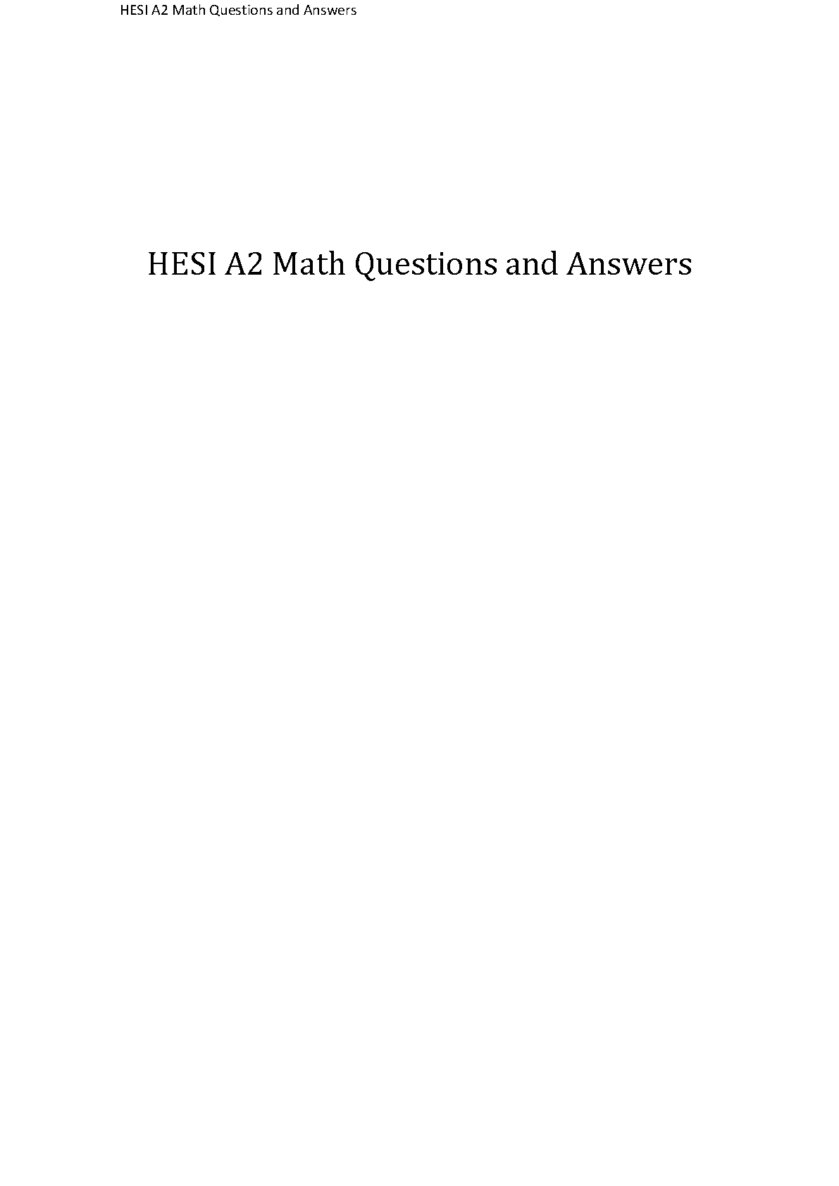 HESI A2 Math Questions and Answers: Exam Prep for 2024-2025