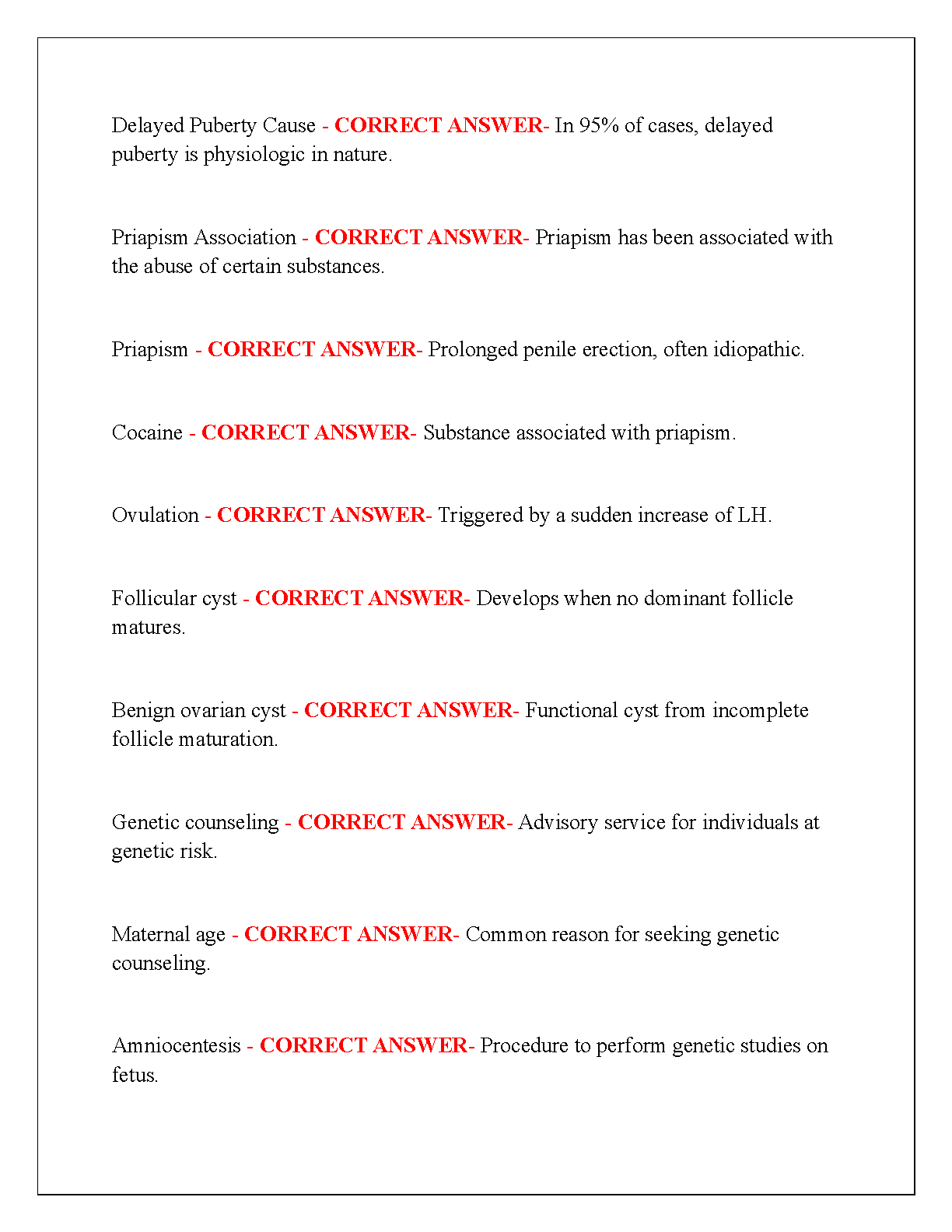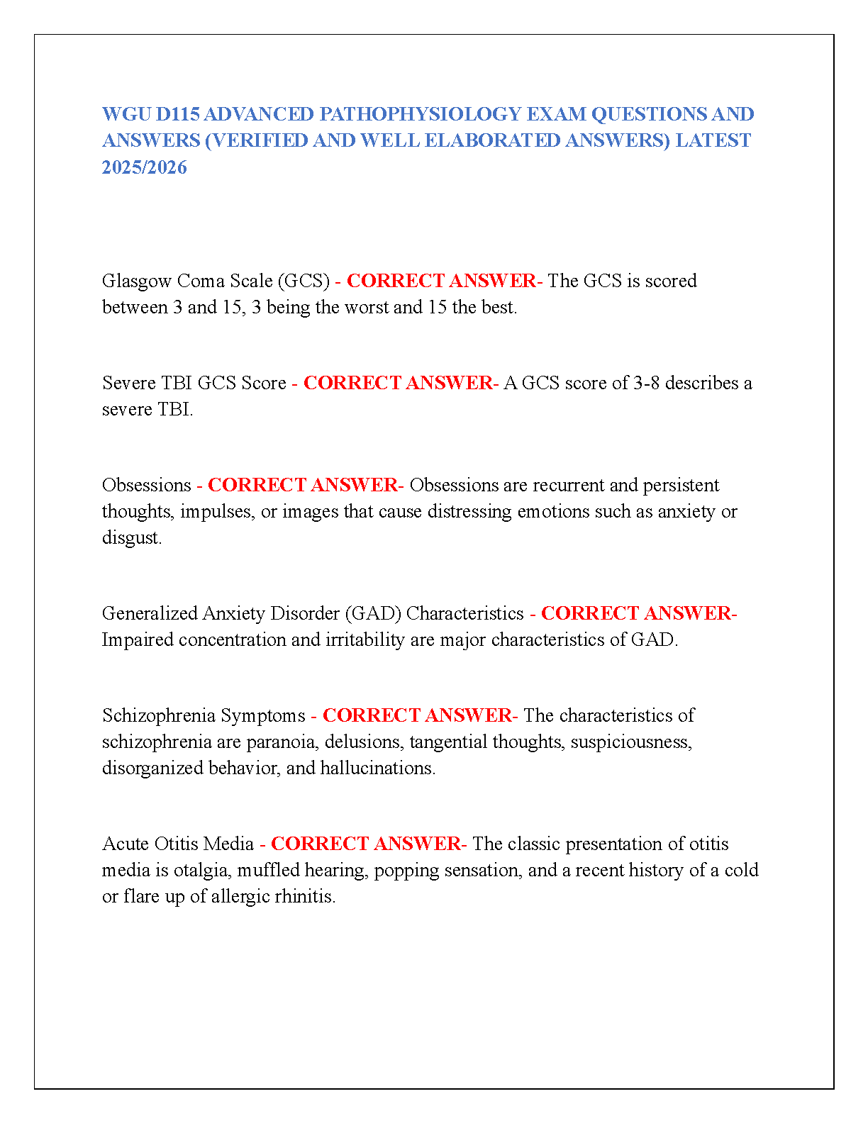 WGU D115 Advanced Pathophysiology Exam Questions and Answers 2024/2025: Verified and Well-Elaborated Answers for First-Attempt Exam Success