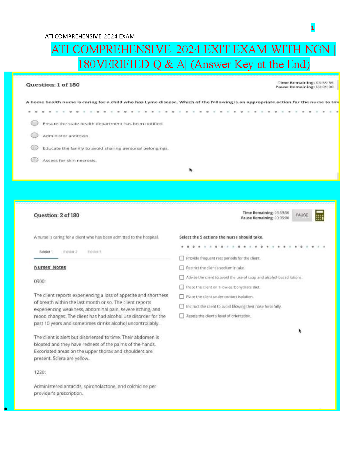 ATI Comprehensive 2024 Exit Exam with NGN: 180 Verified Q&A (Answer Key Included) - Ace Your Exam!