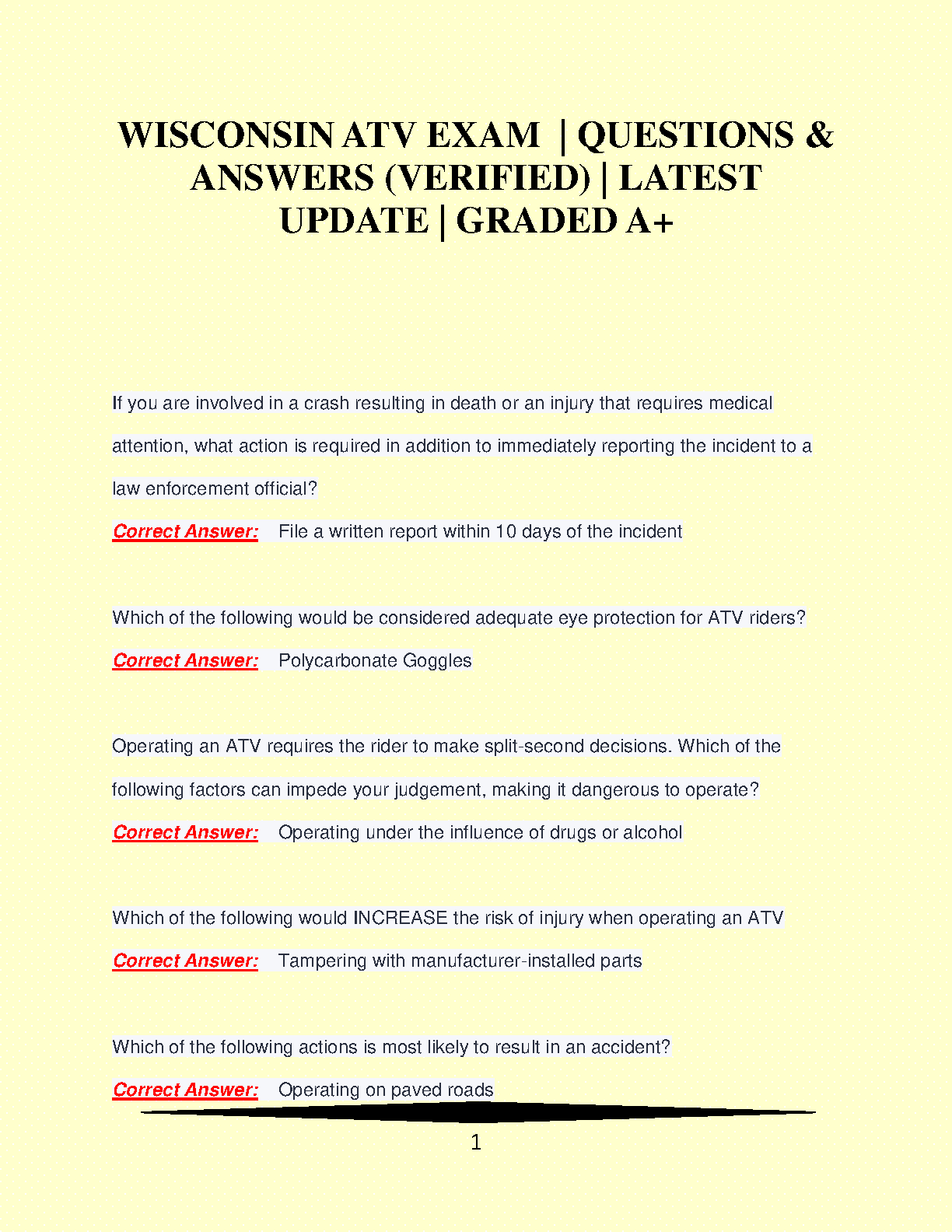 2024-2025 Wisconsin ATV Exam: Questions & Answers (Verified) - Pass Your Exam on the First Attempt