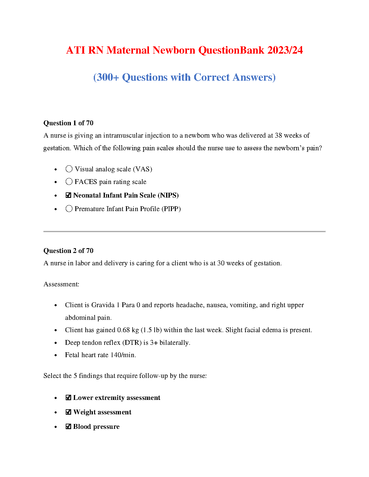 Ace your ATI RN Maternal Newborn exam with this comprehensive question bank, featuring 300+ questions with detailed explanations. Prepare effectively for the exam and avoid resits with this 2024/2025 edition designed to boost your exam scores on your first attempt.
