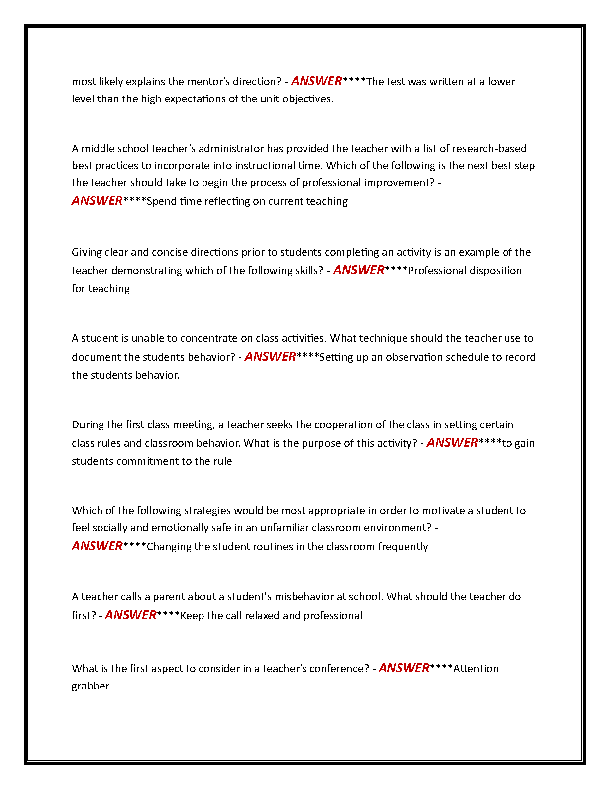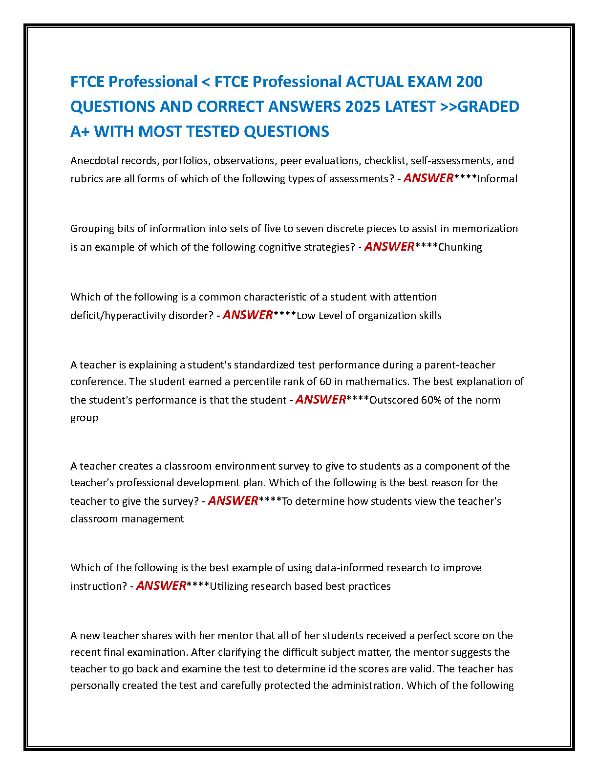 FTCE Professional Actual Exam 2025: Questions and Correct Answers with Most Tested Questions (2024/2025 Edition)
