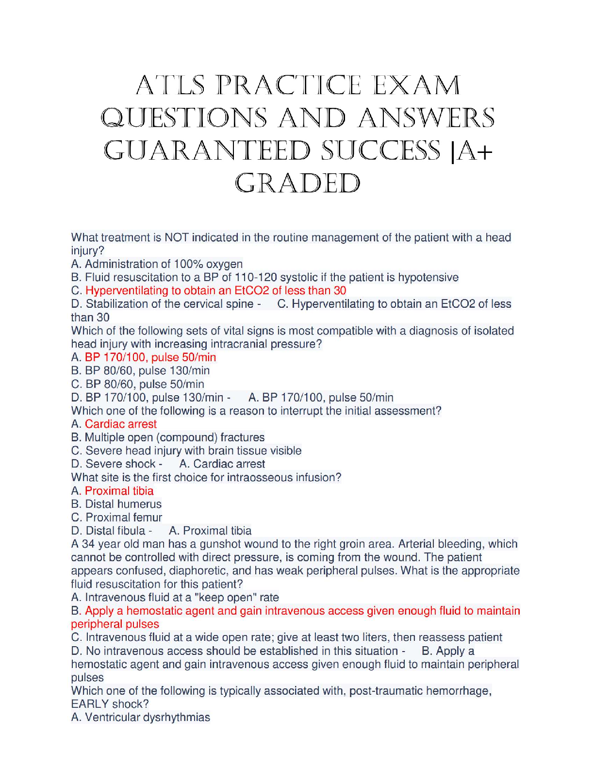 ATLS Practice Exam Questions and Answers: Guaranteed Success | A+ Graded Edition - [Complete Author Names]