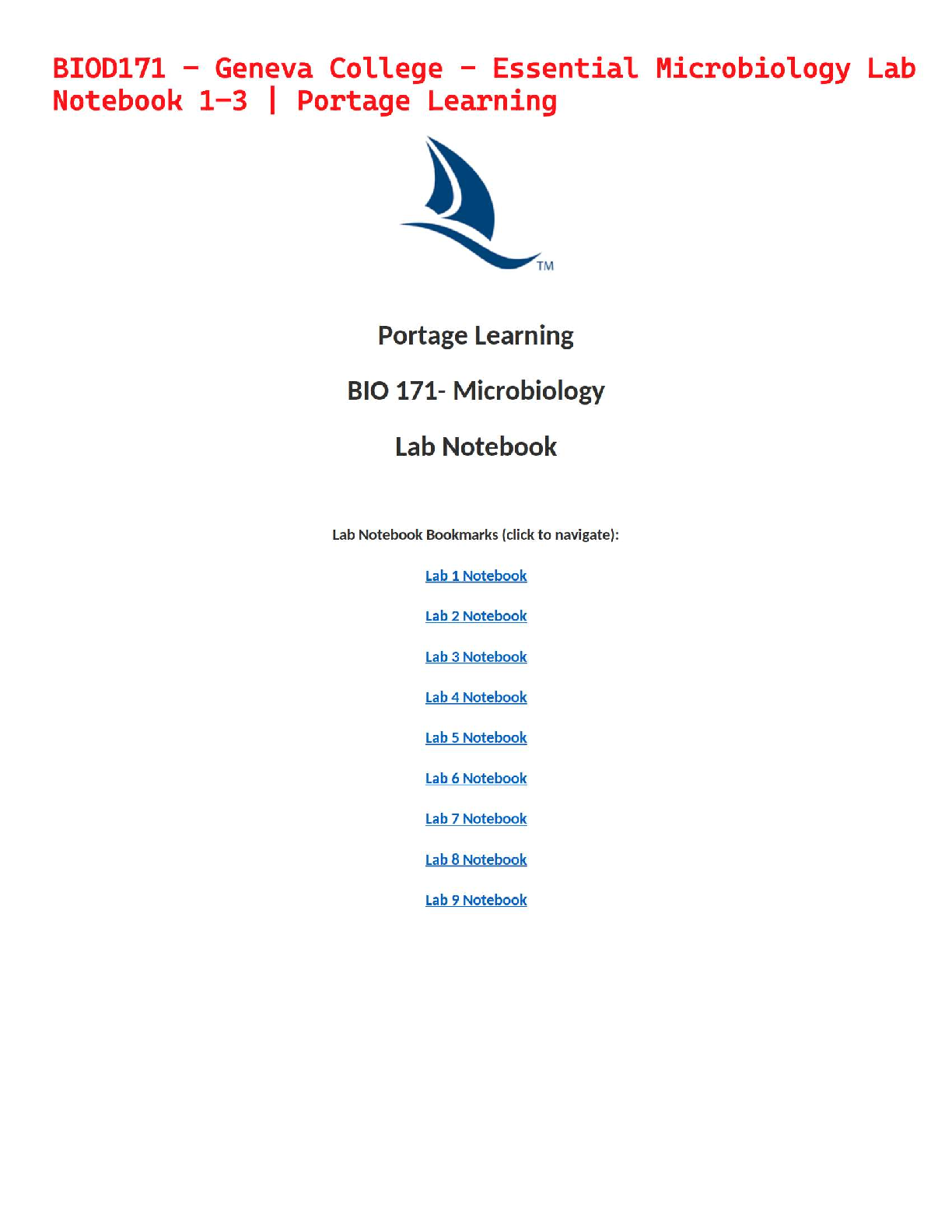 Ace your Geneva College BIO 171 Microbiology exams the first time! This comprehensive lab notebook, designed for the 2024-2025 academic year, provides a structured guide to essential microbiology experiments. Concise notes, clear explanations and step-by-step instructions will help you understand concepts and master the techniques. Avoid resits and achieve your academic goals with this invaluable resource.