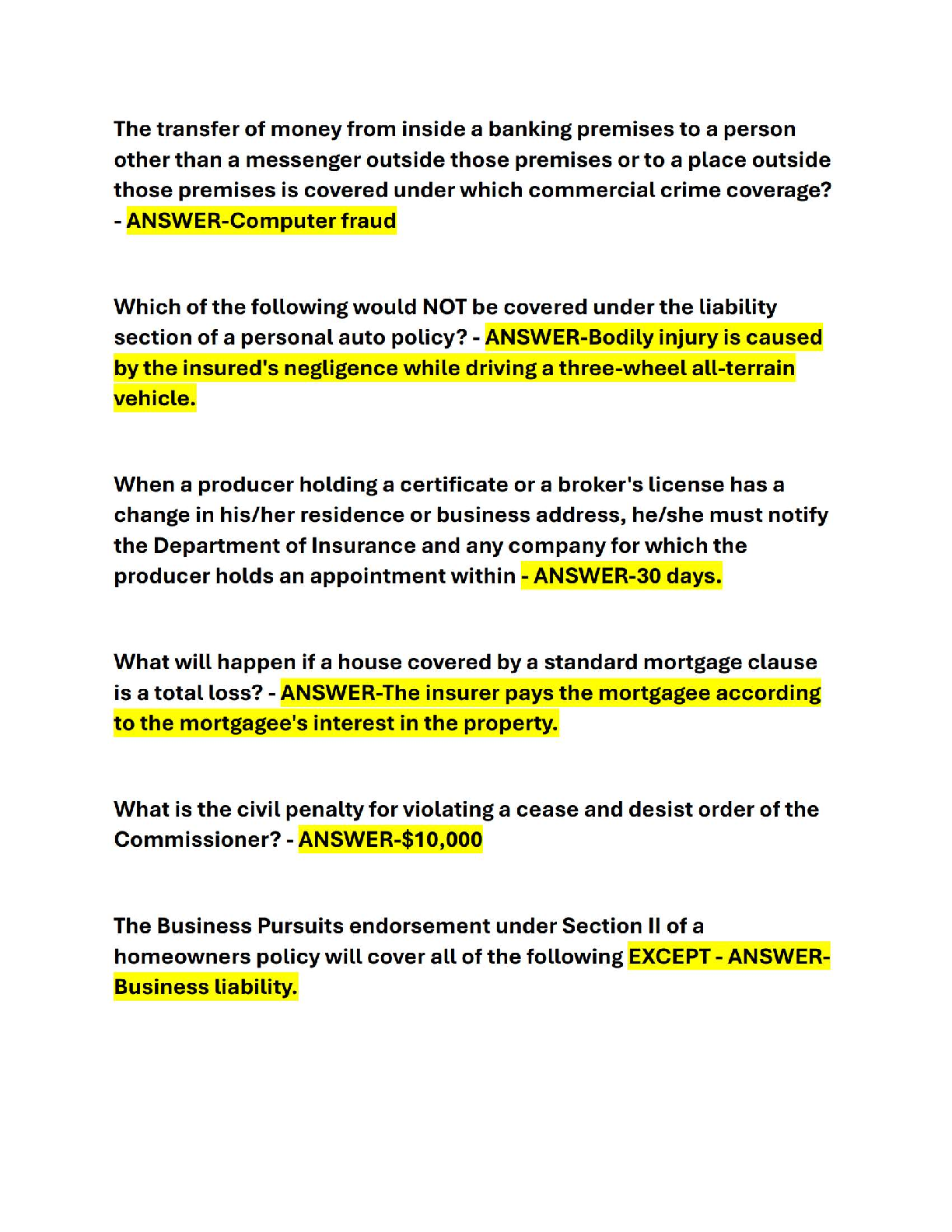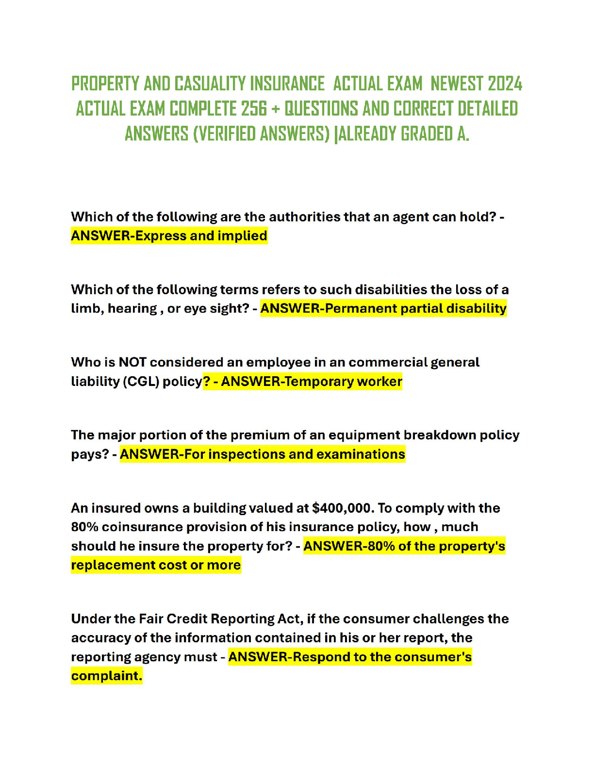 2024/2025 Property and Casualty Insurance Exam Prep: 256+ Questions and Answers by [Author Names]