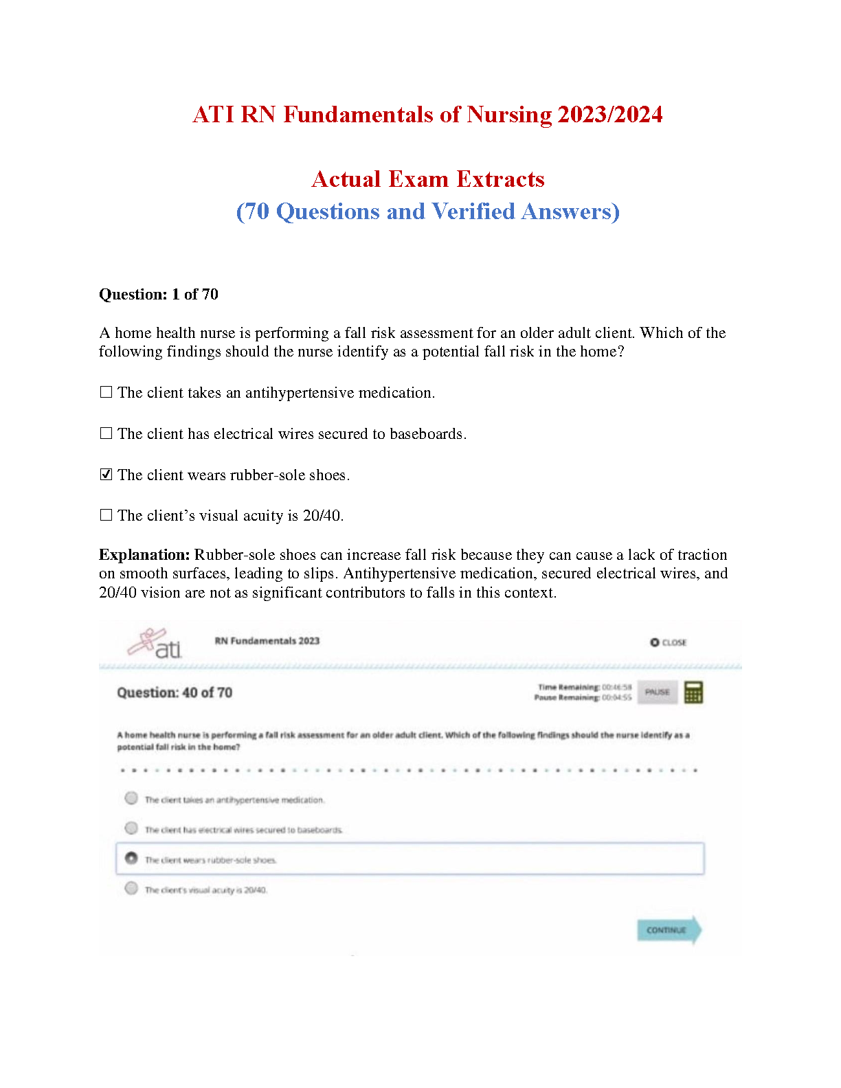 Ace your ATI RN Fundamentals of Nursing exam with this comprehensive study guide featuring 70 actual exam questions and verified answers. This resource is designed to help you pass your nursing exam on the first try, avoiding costly resits. Prepare effectively for the 2024/2025 academic year.