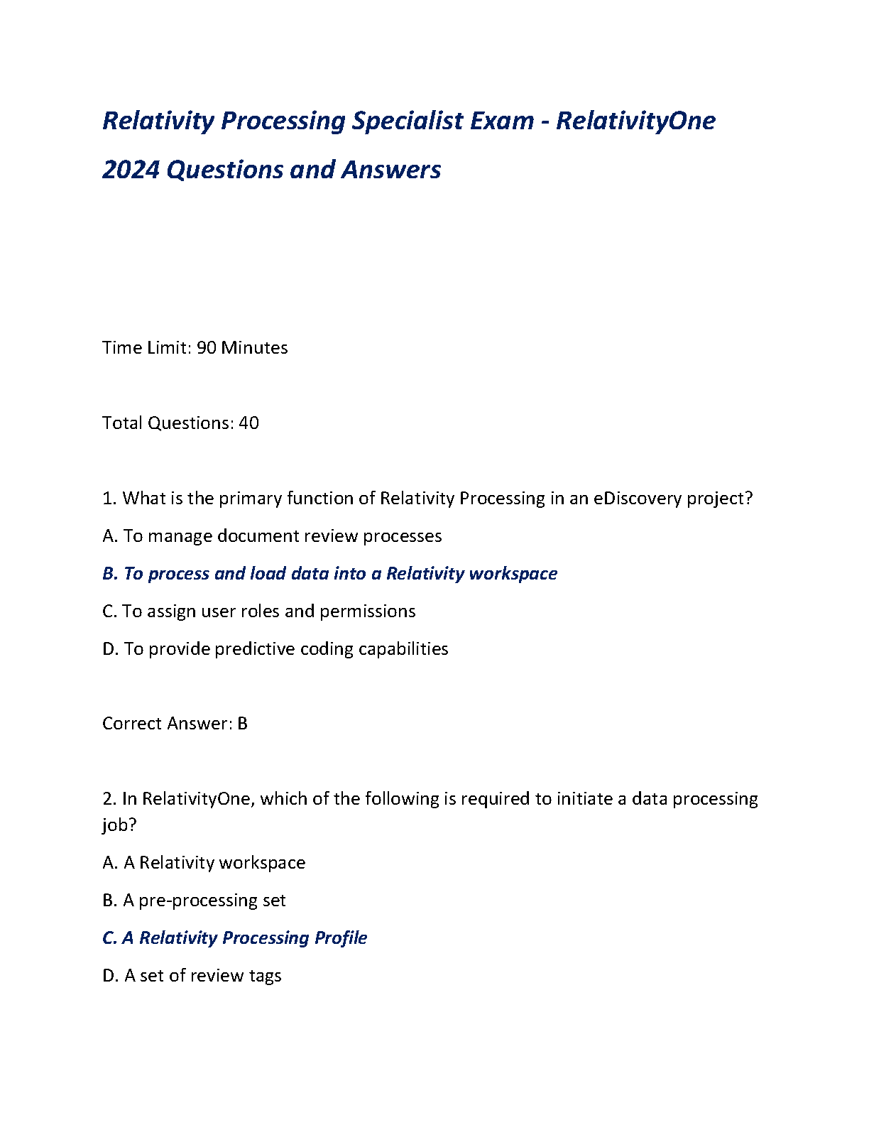 2024 Relativity Processing Specialist Exam: Questions and Answers - RelativityOne