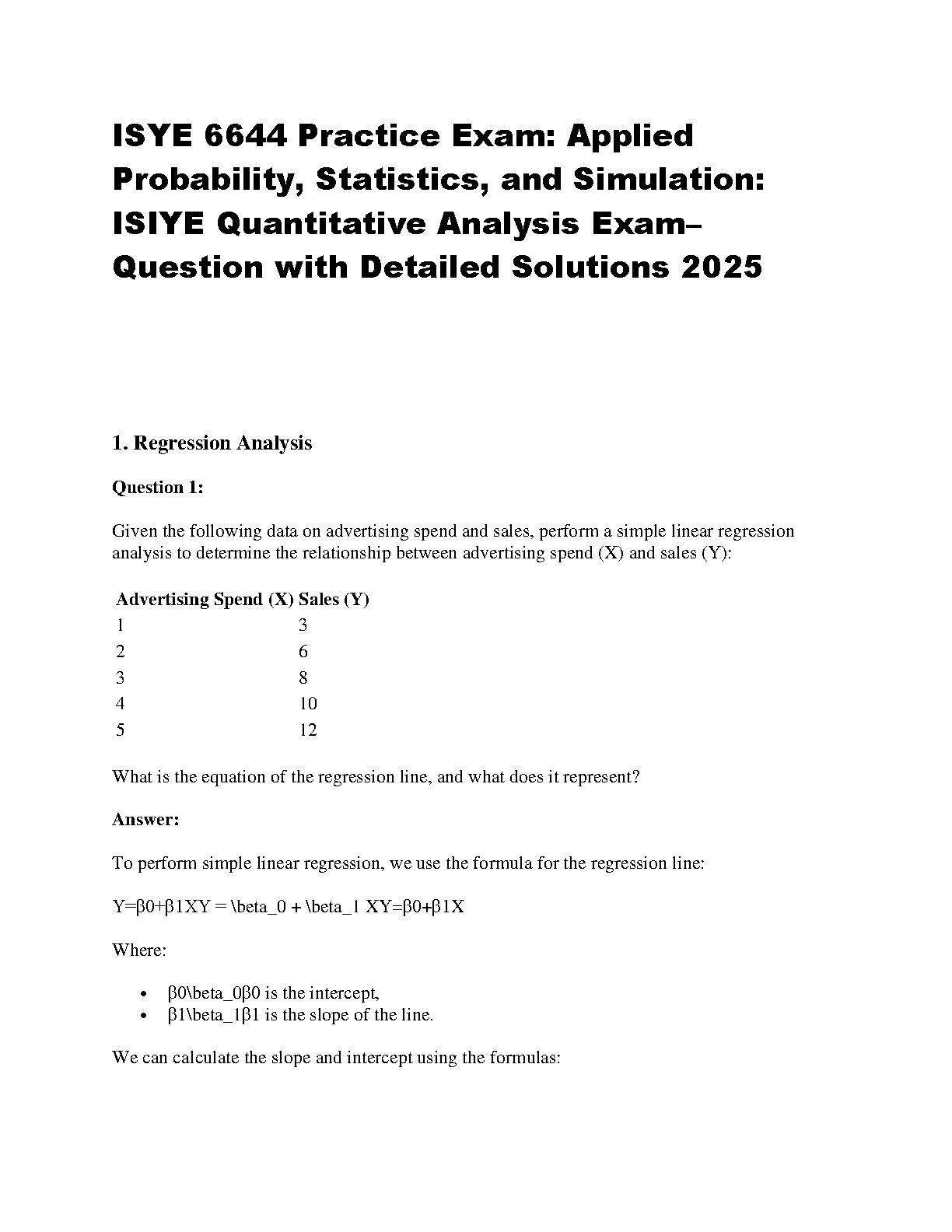 Ace your ISYE 6644 exam with this comprehensive 2025 practice exam featuring detailed solutions. This resource is designed to help you understand key concepts and improve your problem-solving skills, leading to a successful first attempt and avoiding resits. Master applied probability, statistics, and simulation techniques.