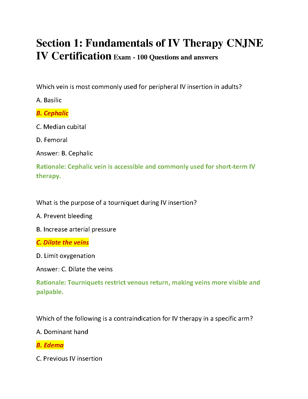 2024-2025 IV Certification Exam Prep: 100 Questions and Answers by CNJNE