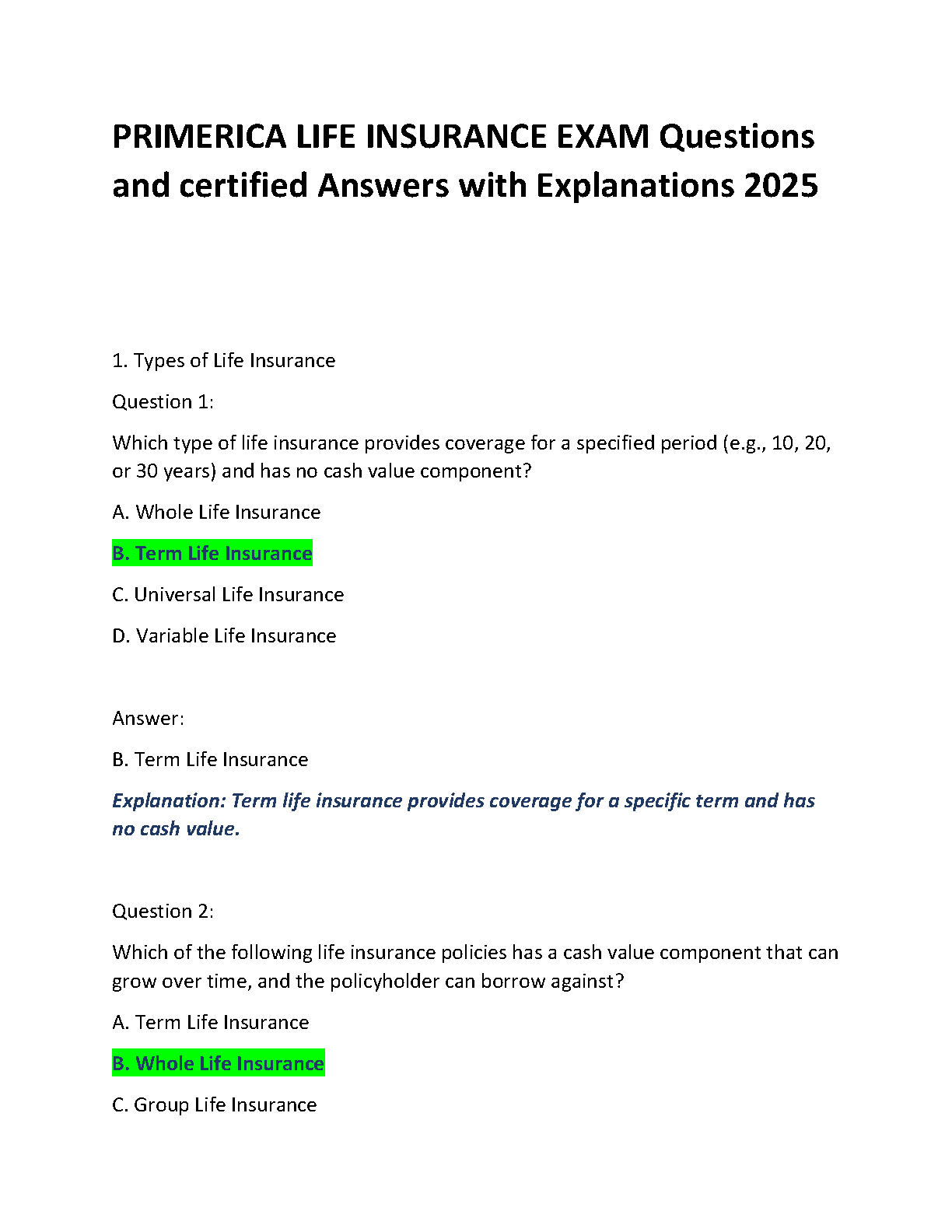 2025 Primerica Life Insurance Exam Questions and Answers with Explanations: Ace Your Exam on the First Attempt