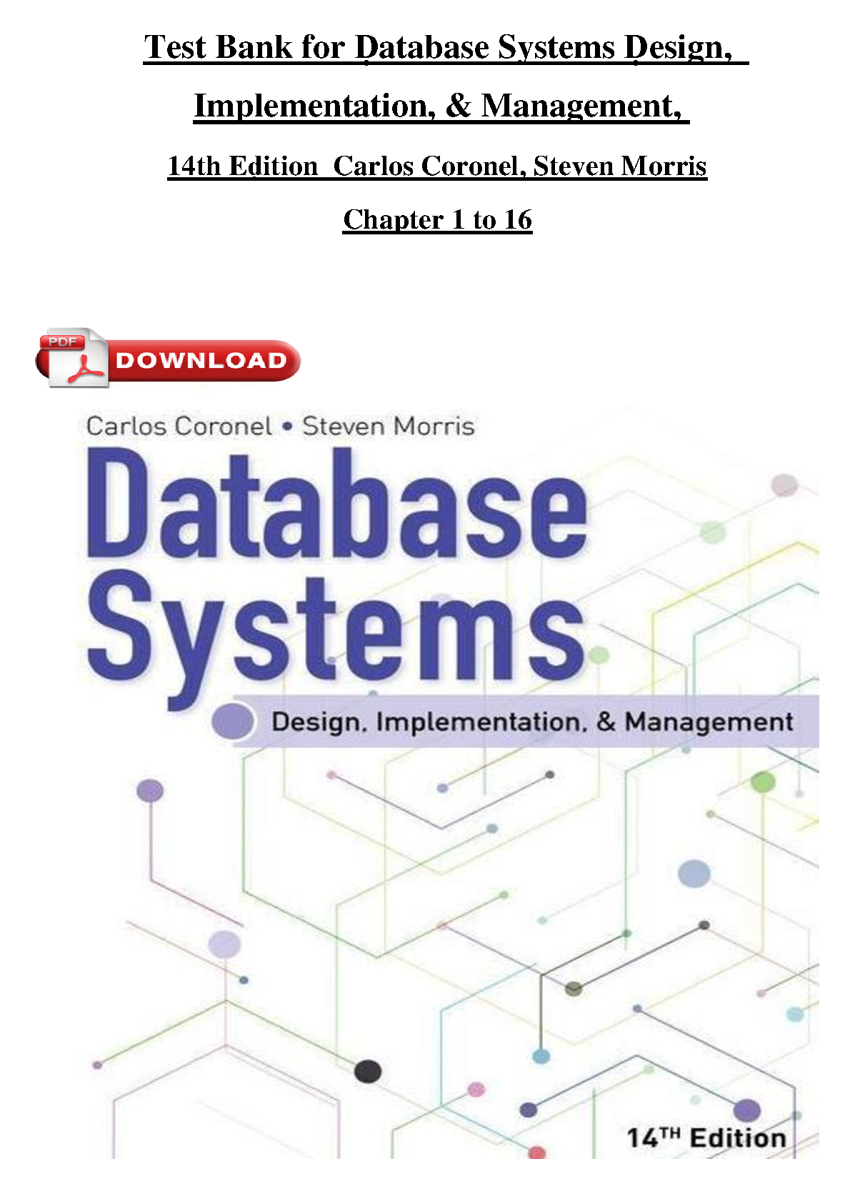 Ace your Database Systems Design, Implementation, and Management exams with this comprehensive test bank, covering Chapters 1-16 of the 14th edition by Carlos Coronel and Steven Morris. Prepare effectively and avoid resits with this invaluable resource.