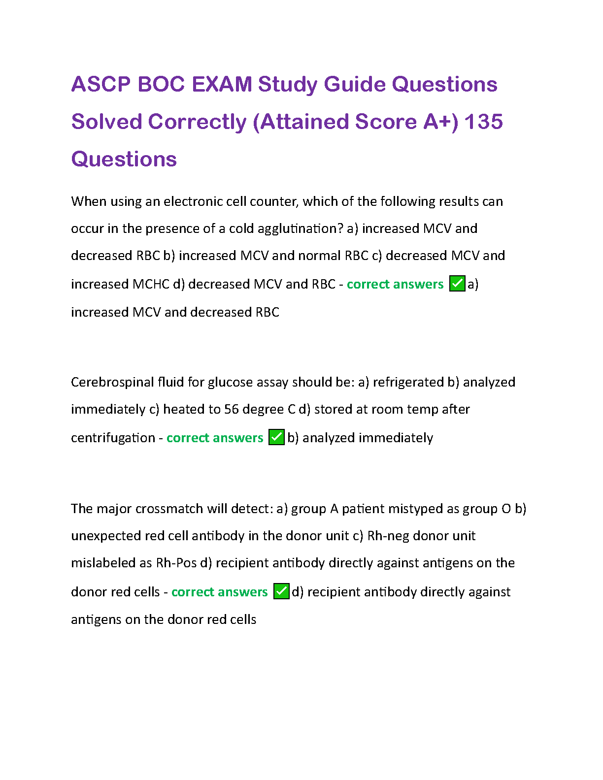 This comprehensive study guide contains 135 solved ASCP BOC exam questions, ensuring you're fully prepared to pass your exam on the first try and avoid resits. The questions cover key topics and are meticulously explained, making learning effective and efficient. Ideal for 2024/2025 academic year students.