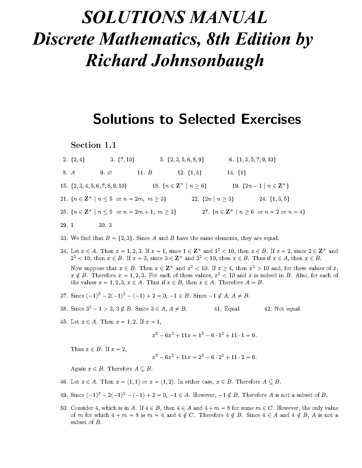 Discrete Mathematics 8th Edition Solutions Manual by Richard Johnsonbaugh