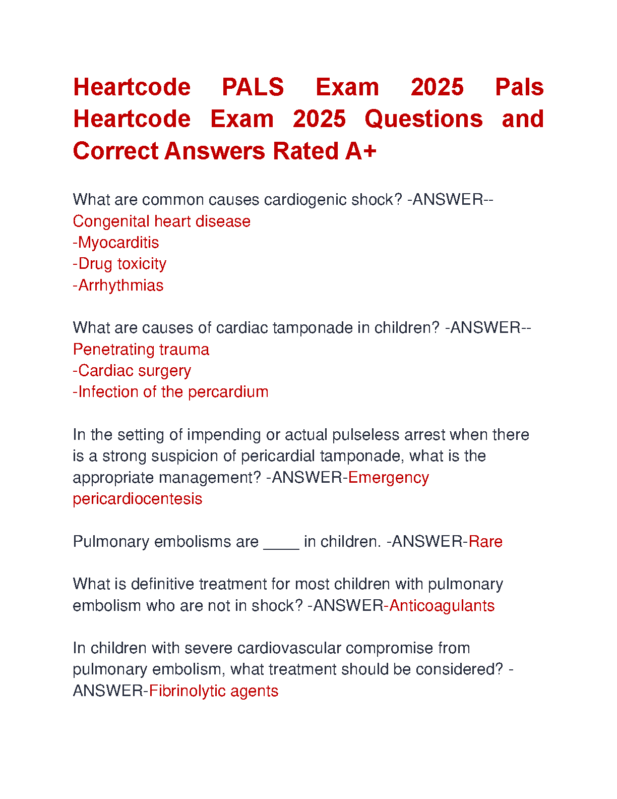 Heartcode PALS Exam 2025 Questions and Answers by [Author Name] - A+ Rated