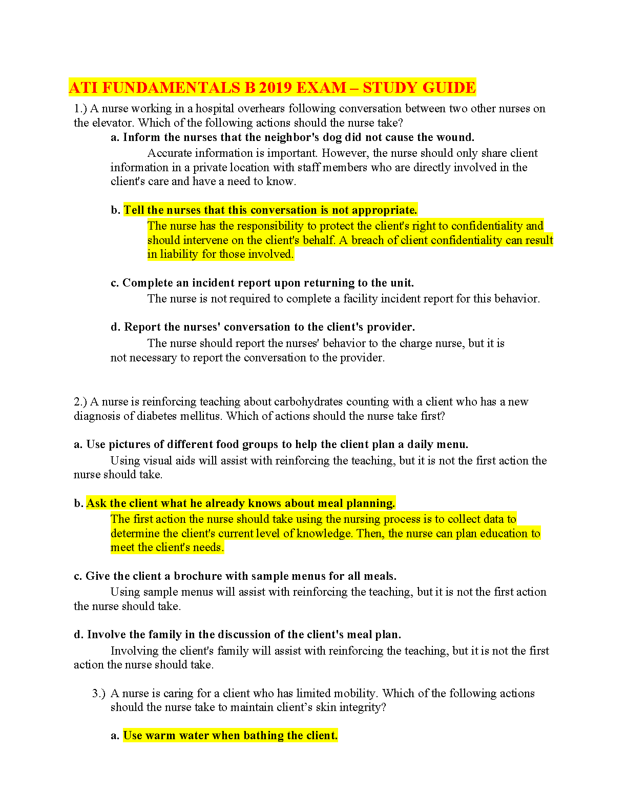ATI FUNDAMENTALS B EXAM – STUDY GUIDE UPDATED FOR 2023/2024