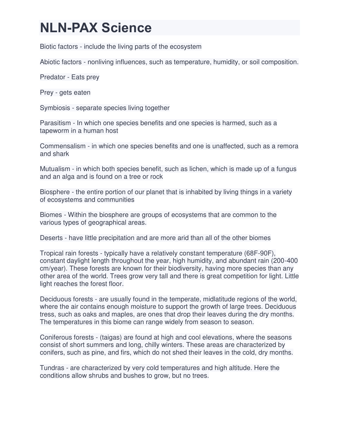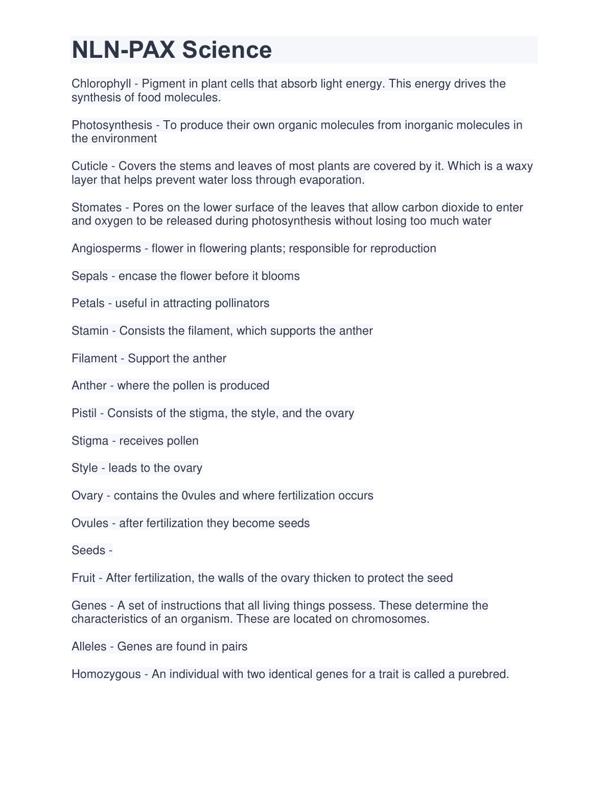 NLN pax science QUESTIONS AND ANSWERS. GRADED A+