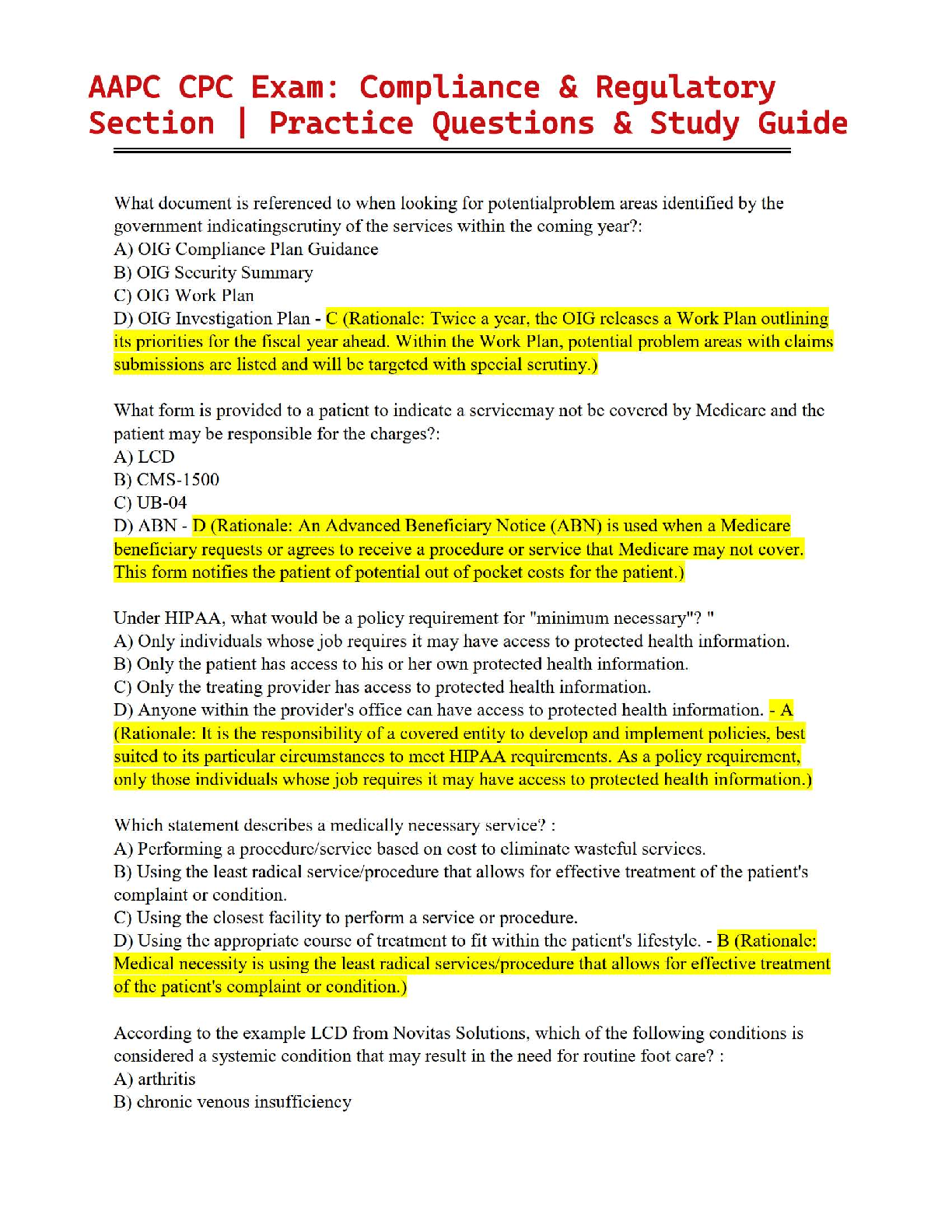 AAPC CPC Exam: Compliance & Regulatory Section - Practice Questions & Study Guide