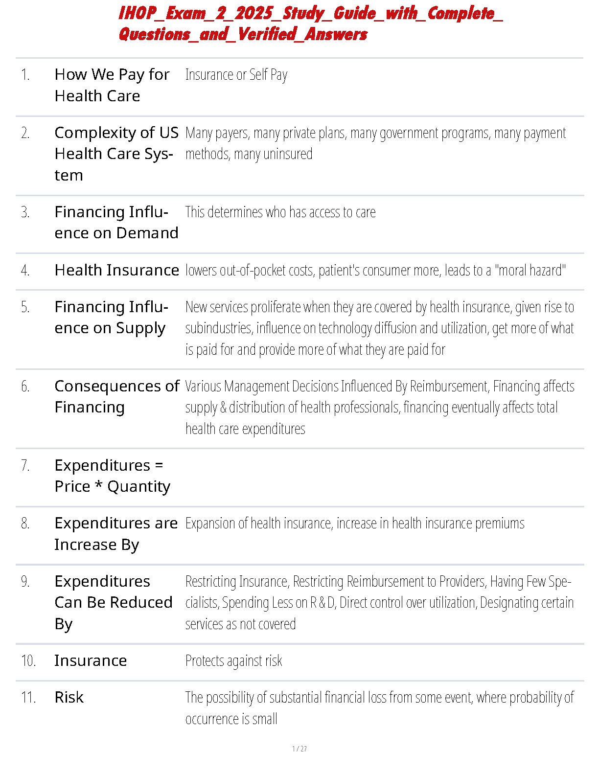 IHOP Exam 2 2025 Study Guide with Complete Questions and Verified Answers