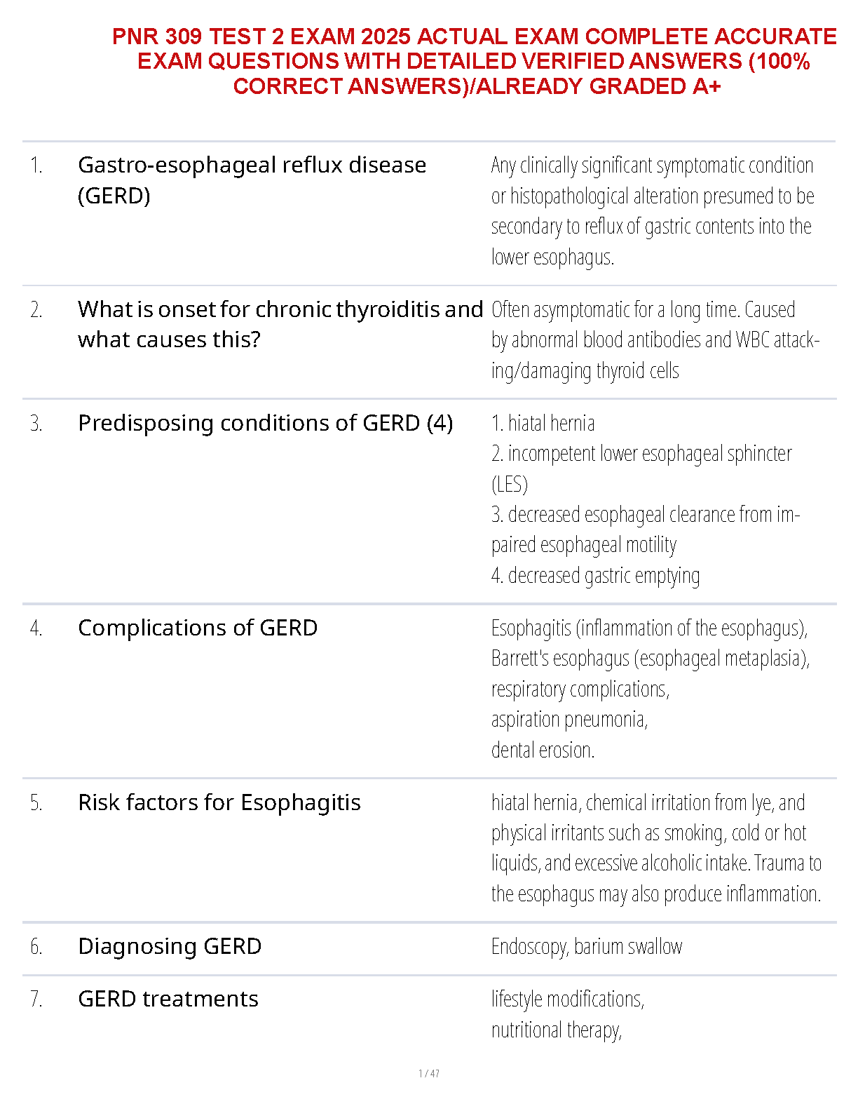 Ace your PNR 309 Test 2 exam with this comprehensive resource. This 2025 edition provides detailed, verified answers (100% accuracy) to all exam questions, ensuring you pass on your first attempt. Already graded A+!