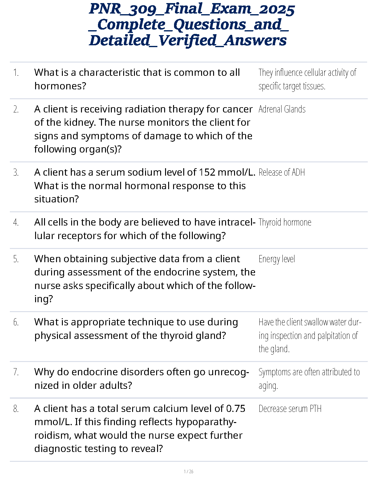 Ace your PNR 309 final exam with this comprehensive question bank, featuring detailed explanations and verified answers. Prepare effectively and pass on your first attempt! Ideal for students aiming for exam success in the 2024-2025 academic year.