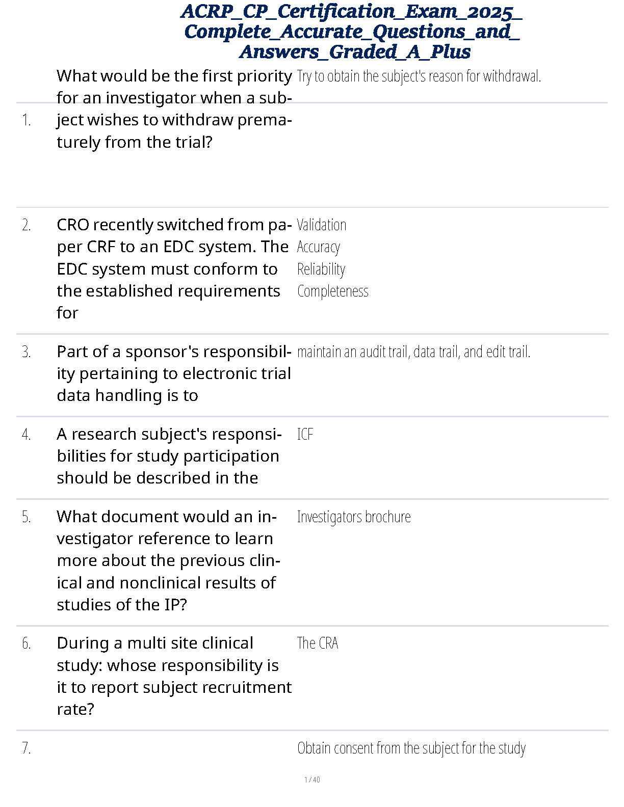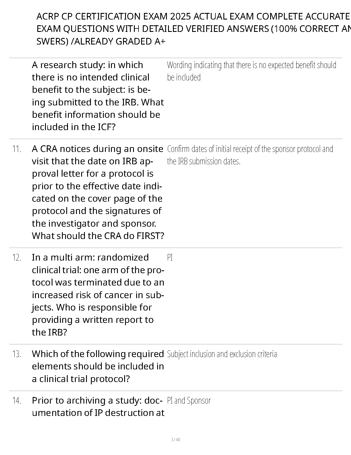 Ace your ACRP CP Certification Exam in 2025 with this comprehensive guide. This resource includes complete, accurate questions and answers, graded A+ for first-attempt success and exam mastery. Avoid resits and boost your confidence with this invaluable study tool.
