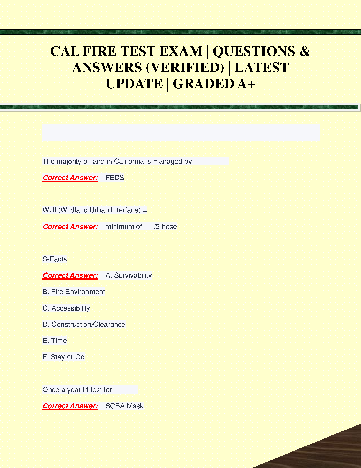 CAL FIRE Test Exam Questions & Answers (Verified) - Latest Update 2024/2025 Edition