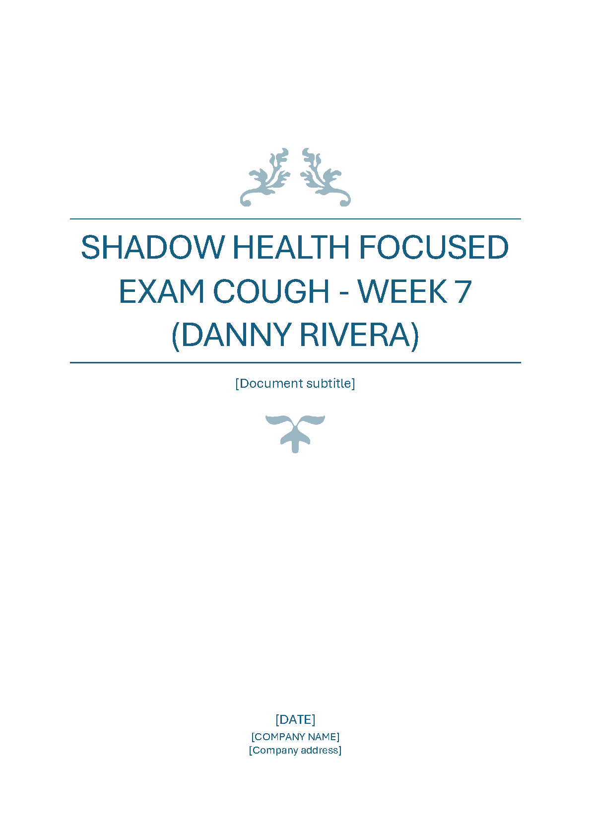 Ace your Shadow Health Focused Exam on Cough with this comprehensive study guide by Danny Rivera. Designed to help students pass on their first attempt, this resource provides in-depth coverage of week 7 materials, ensuring exam readiness and avoiding resits. Ideal for 2024/2025 academic year.