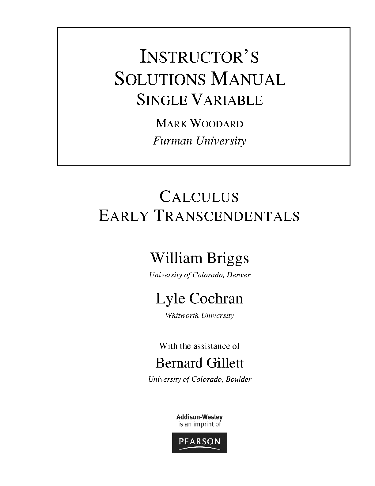 Calculus Early Transcendentals Instructor's Solutions Manual Single Variable - Briggs, Cochran, Gillett, and Woodard