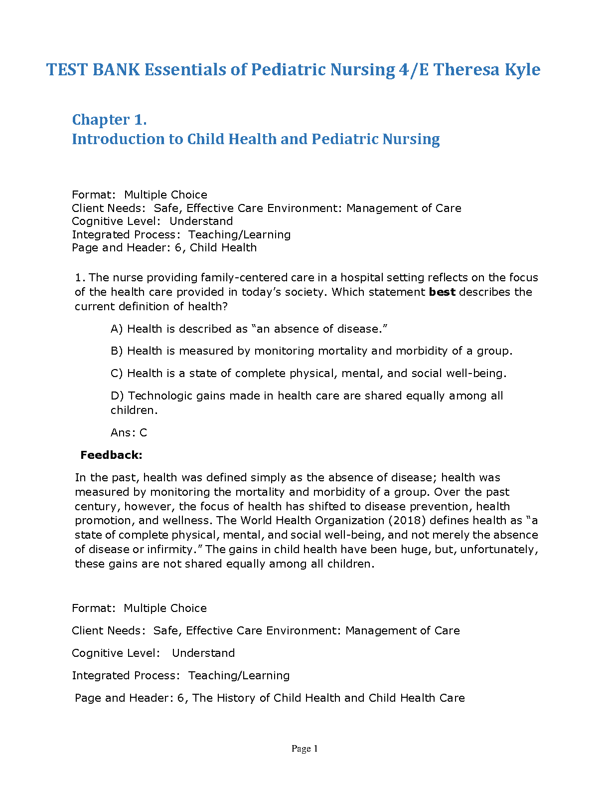 Test Bank: Essentials of Pediatric Nursing 4th Edition by Theresa Kyle
