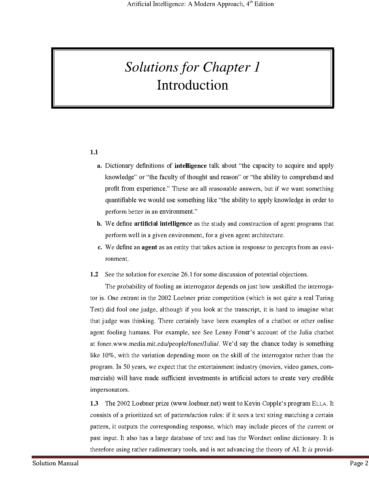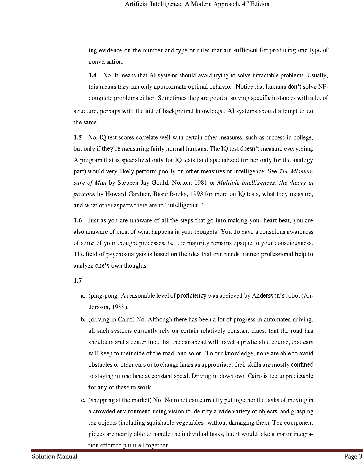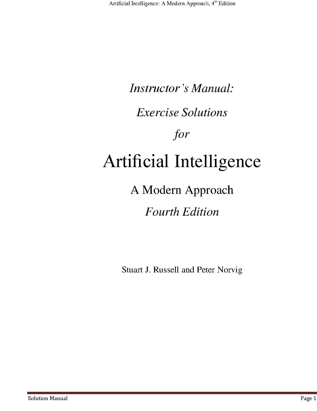 Artificial Intelligence: A Modern Approach, 4th Edition - Instructor's Solutions Manual by Stuart Russell and Peter Norvig