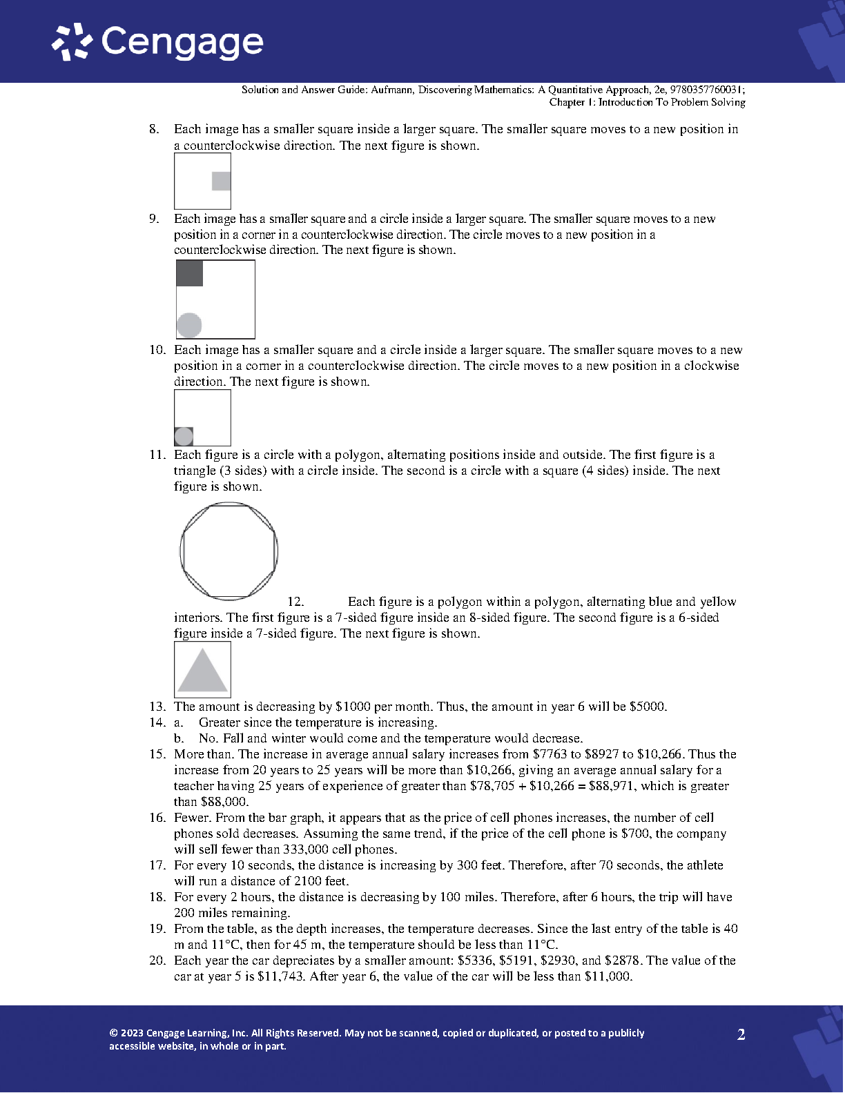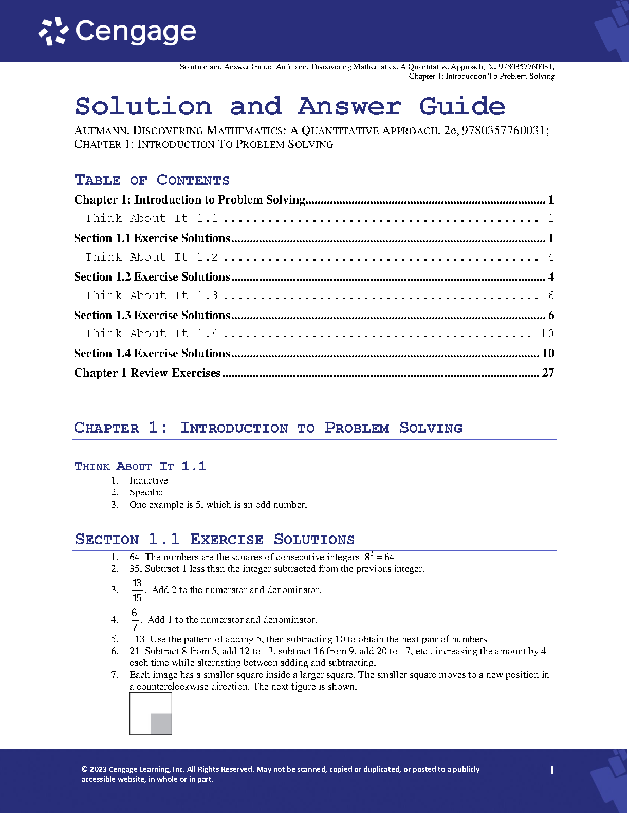Solution and Answer Guide for Aufmann, Lockwood, Nation, & Clegg's Discovering Mathematics: A Quantitative Approach, 2nd Edition