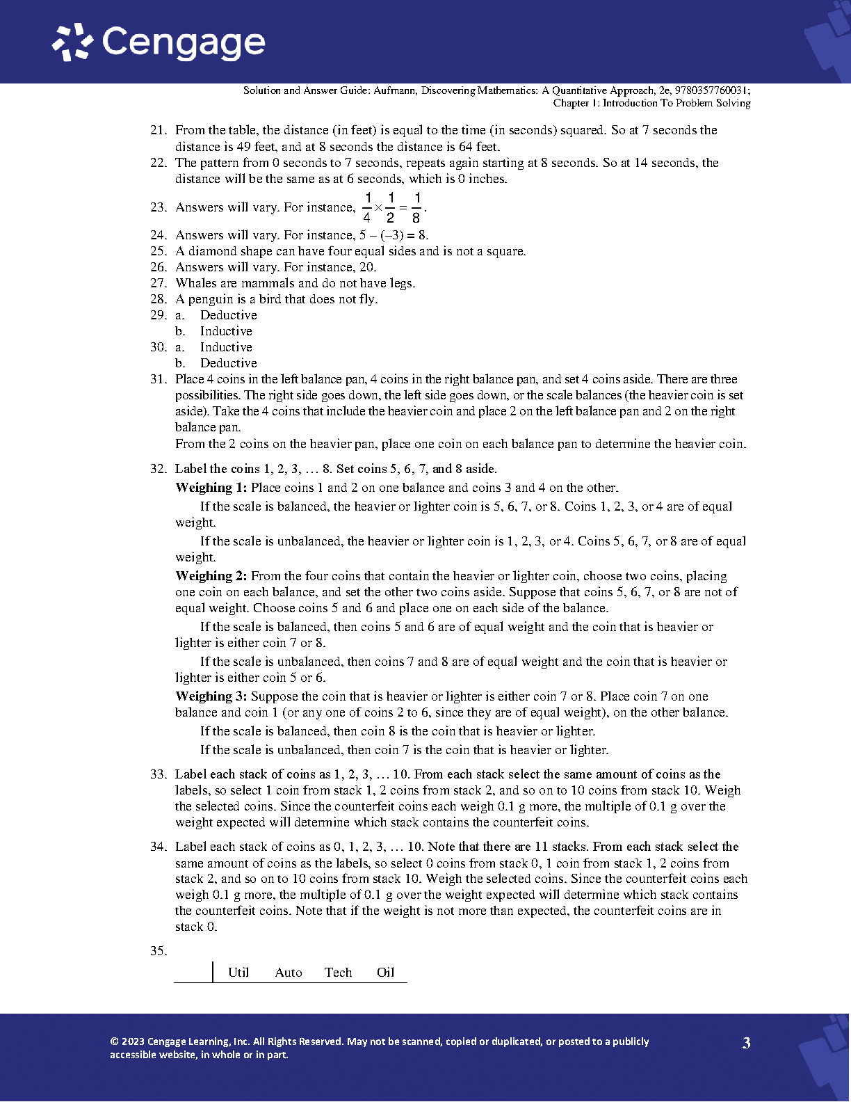 This comprehensive solution manual provides detailed, step-by-step solutions to all exercises in Aufmann, Lockwood, Nation, & Clegg's Discovering Mathematics: A Quantitative Approach, 2nd edition. Ideal for students aiming to master the material and achieve exam success on their first attempt, avoiding resits. Gain confidence and improve your understanding with clear explanations and worked examples.