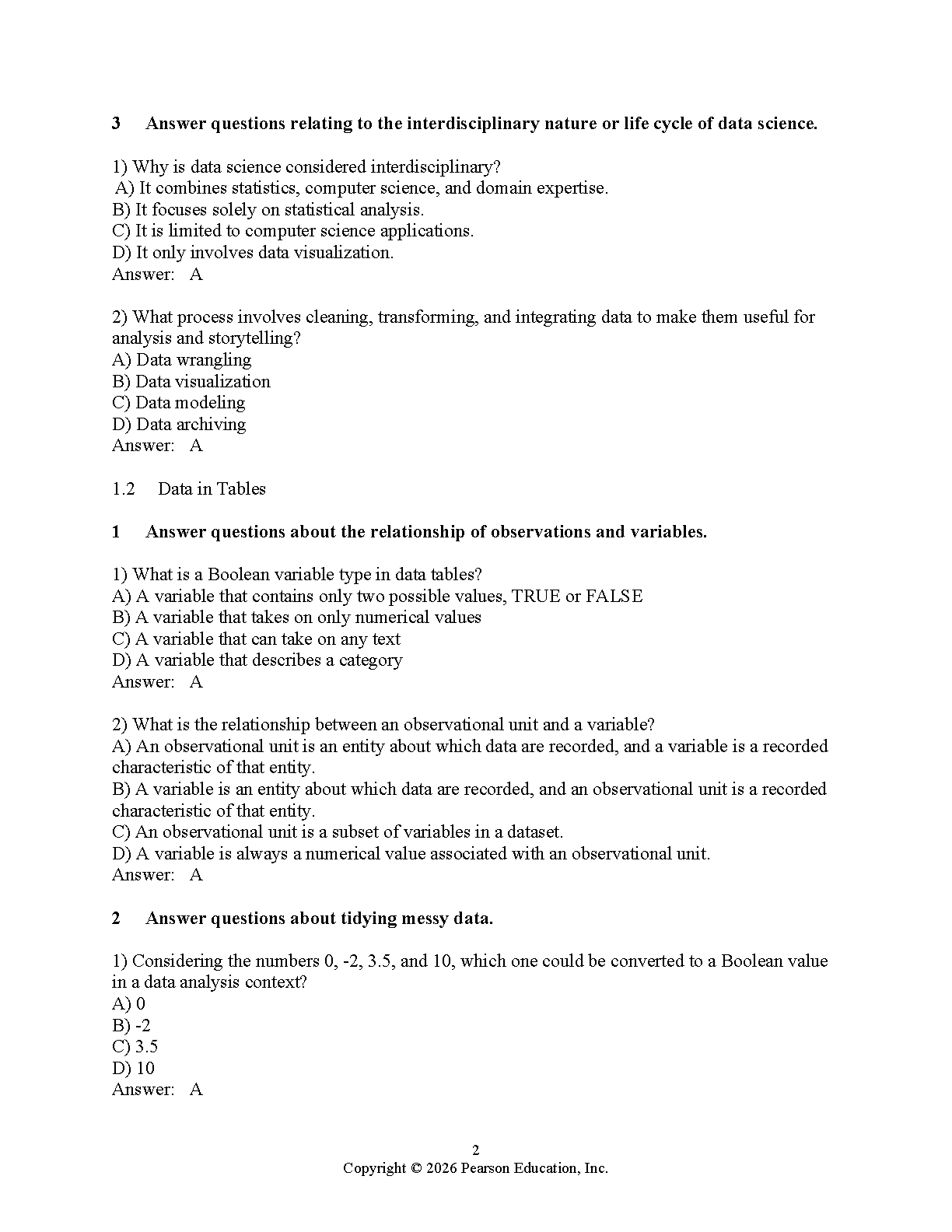 Ace your Data Science exams with this comprehensive test bank for Data Science for All, 1st Edition by Foster Glanz and Matthew Davis. This resource is designed to help students master key concepts and improve their exam performance, leading to first-attempt success and avoiding resits. Prepare effectively for your 2024/2025 academic year.