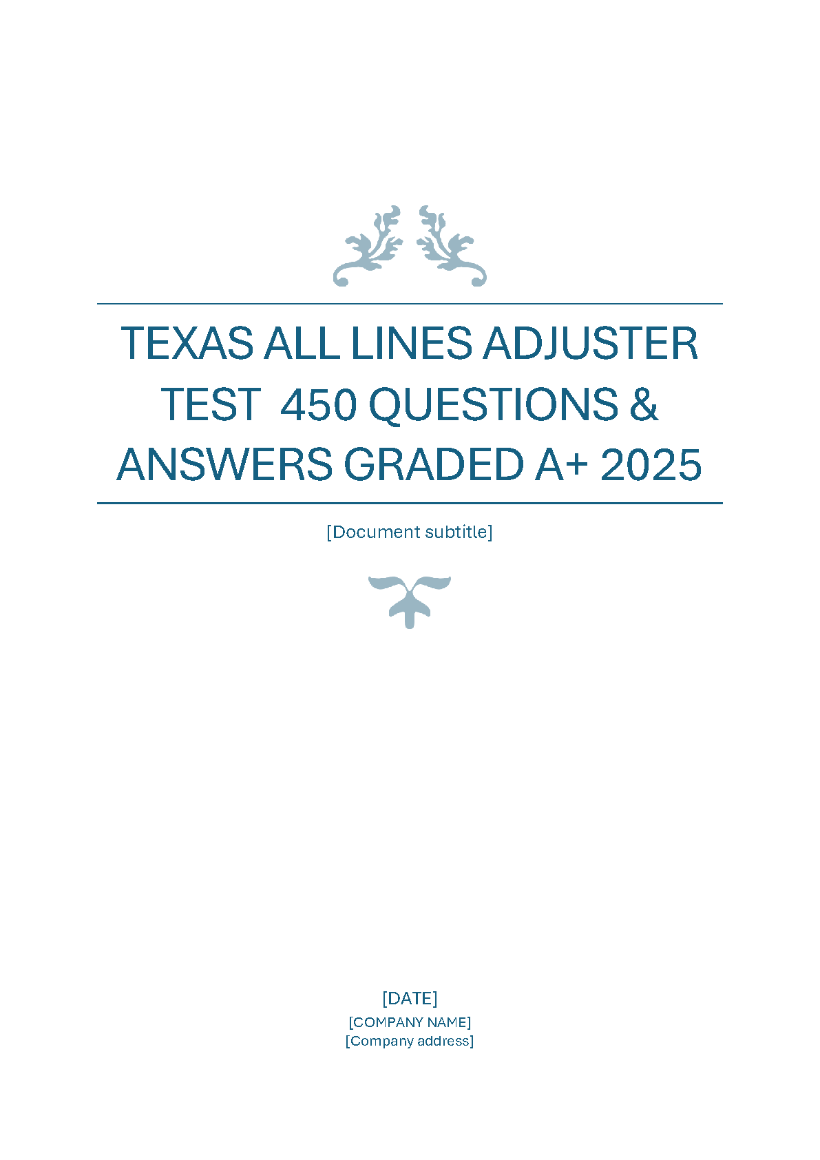2025 Texas All Lines Adjuster Exam: 450 Questions & Answers for A+ Results