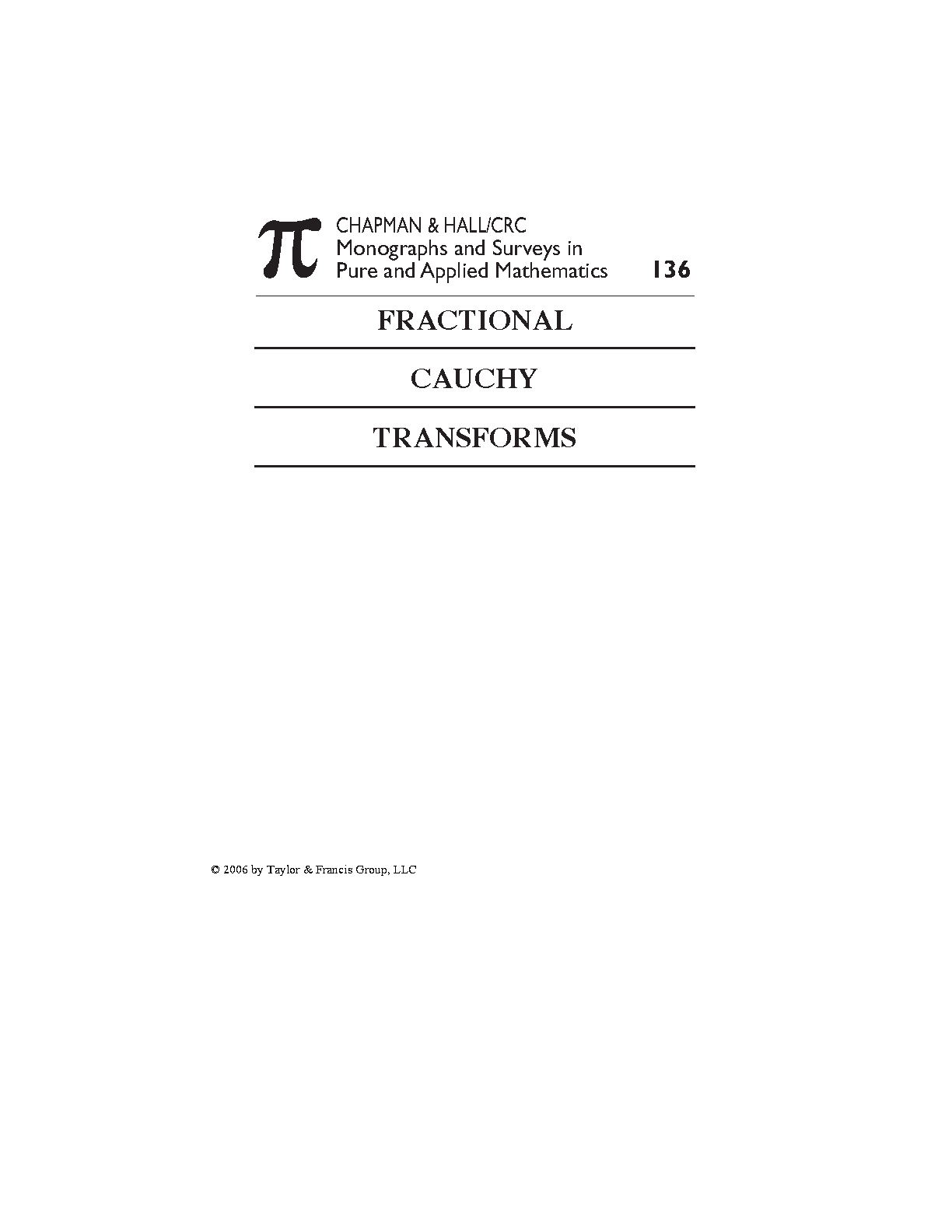 Fractional Cauchy Transforms: by Rita A. Hibschweiler and Thomas H. MacGregor (Chapman & Hall/CRC Monographs and Surveys in Pure and Applied Mathematics, 136)